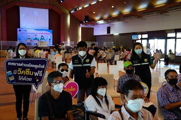 วันนี้ได้มีประชาชนเดินทางมาฉีดวัคซีนเข็มแรกเป็นวัคซีนซิโนฟาร์ม ให้กับประชาชนผู้สูงอายุผู้มีโรคประจำตัวและพระภิกษุส่งในเขตพื้นที่นิคมสร้างตนเองและตำบลโคกตูมวันนี้มีประชาชนเดินทางมาอย่างคึกคัก