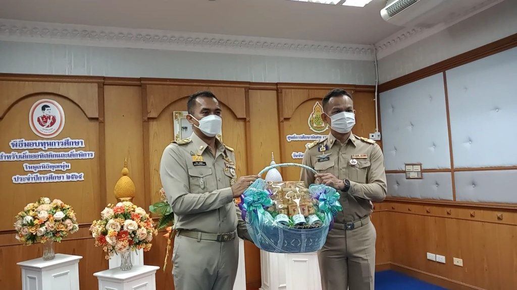 เป็นประธานในพิธีมอบทุนการศึกษามูลนิธิคุณพุ่ม และกล่าวคำให้โอวาท เพื่อเป็นขวัญและกำลังใจแก่เด็กพิการและครอบครัว ณ พื้นที่หน้าห้องประชุมพระปรางค์สามยอด ชั้น 5 ศาลากลางจังหวัดลพบุรี โดยมี นายชัยพร พันธุ์น้อย ผู้อำนวยการศูนย์การศึกษาพิเศษ เขต.6 จังหวัดลพบุรี
