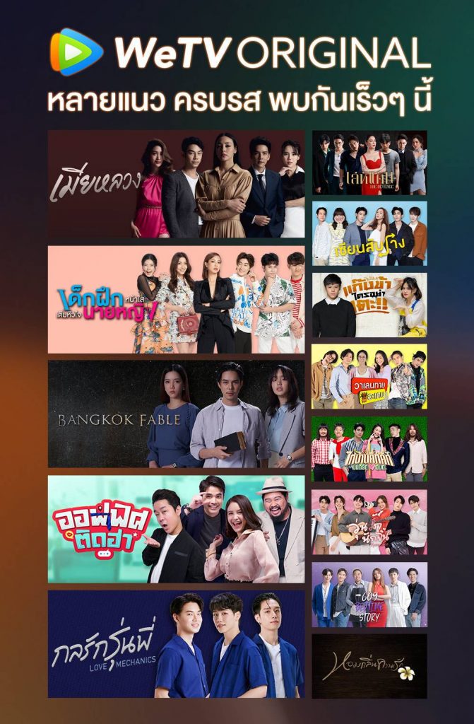 งานนี้บอกเลยว่าคอซีรีส์ไทยห้ามพลาดอย่างเด็ดขาด เตรียมปูเสื่อรอชม WeTV ORIGINAL 13 เรื่องใหม่ ที่มาให้เลือกชมกันแบบหลากรส ครบอารมณ์ ได้ทางแอปพลิเคชัน WeTV หรือ www.WeTV.vip เท่านั้น พร้อมติดตามข่าวสารอัพเดทผ่านทางโซเชียลมีเดีย WeTV Thailand ทุกช่องทาง