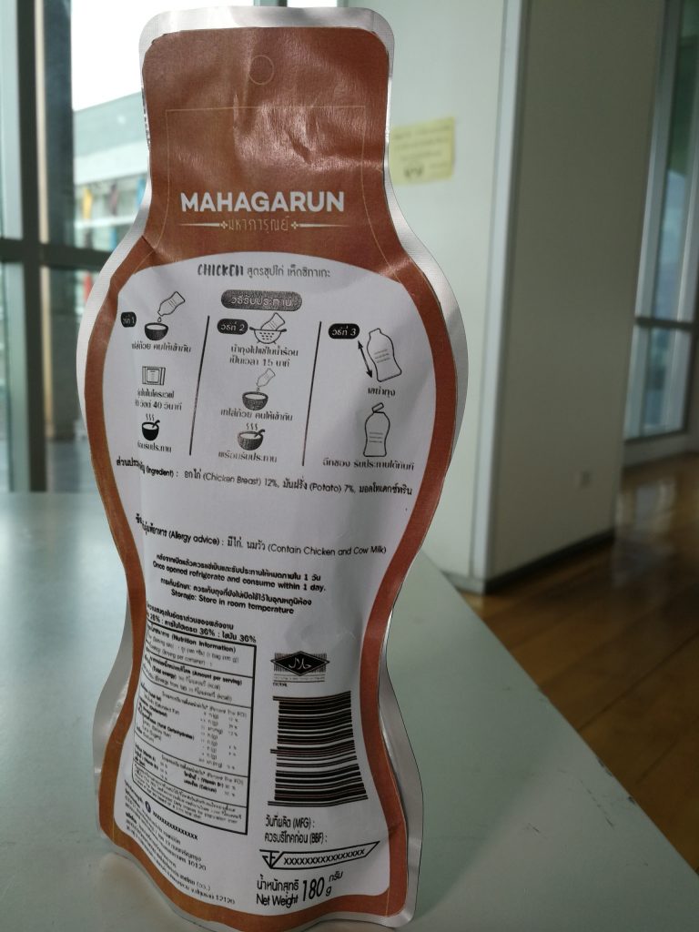 รศ.นพ. กรภัทร มยุรสาคร คณะแพทยศาสตร์ศิริราชพยาบาล มหาวิทยาลัยมหิดล เปิดเผยว่า ปัจจุบันประชากรผู้สูงอายุมีจำนวนเพิ่มมากขึ้น และมักจะมีปัญหาสุขภาพตามมา เช่น ปัญหาด้านโภชนาการจึงทำให้ได้รับสารอาหารไม่เพียงพอ นอกจากนี้ก็ยังมีปัจจัยเสริมจากปัญหาความเสื่อมของร่างกายทำให้มีปัญหาในเรื่องการกลืนอาหารจึงทำให้เกิดการสำลัก แม้ในกลุ่มผู้สูงอายุที่คิดว่าตัวเองมีสุขภาพดีแต่เมื่อทดสอบด้วยการส่องกล้องจะพบว่ามีการรั่วไหลของอาหารที่รับประทานลงไปสู่หลอดลม และอาจจะมีจำนวนมากกว่าร้อยละ 50 ของผู้สูงอายุทั่วไปที่มีอาการเหล่านี้ ดังนั้น โครงการฯ จึงได้พัฒาอาหารสำเร็จรูปสำหรับผู้สูงอายุที่ให้สารอาหารครบถ้วน มีความข้นหนืดมากกว่าอาหารน้ำทั่วไปเพื่อป้องกันการสำลัก มีรสชาติถูกปากคนไทย เพราะผลิตจากวัตถุดิบที่หาได้ในประเทศ เช่น ถั่วเหลือง ไข่ เนื้อไก่ เห็ด งาดำ งาขาว ในการรับประทานก็ไม่ต้องจัดเตรียมที่ยุ่งยาก สะดวกและง่ายต่อการพกพา เพราะเป็นอาหารสำเร็จบรรจุในซอง เพียงฉีกซองใช้หลอดดูดก็สามารถรับประทานได้ทันที รูปแบบของอาหารจะคล้ายสมูทตี้ ลักษณะของตัวเนื้ออาหารจะมีความข้นหนืด สามารถช่วยชะลอการไหลลงหลอดลมได้มากกว่ากว่าอาหารเหลวที่มีอยู่ทั่วไปในท้องตลาด ให้คุณค่าทางครบ 5 หมู่ มีโปรตีนสูง คาร์โบไฮเดรตต่ำ ผู้สูงอายุทั่วไปสามารถรับประทานได้ เพื่อเสริมสุขภาพให้แข็งแรง สำหรับอาหารบางสูตร เช่น สูตรถั่วเหลืองผสมงาขาว และสูตรถั่วเหลืองผสมงาดำ นอกจากจะมีโปรตีนสูงแล้ว ยังมีปริมาณน้ำตาลต่ำ ผู้ป่วยที่เป็นเบาหวานก็สามารถรับประทานได้ จากการทำการวิจัยโดยเชิญอาสาสมัครผู้สูงอายุมาทำสอบรับประทานอาหารสูตรต่างๆ ที่ผลิตขึ้น แล้วส่องกล้องเพื่อดูประสิทธิภาพในการกลืน พบว่าผู้สูงอายุมีความพึงพอใจอยู่ในระดับเดียวกับอาหารทางการแพทย์ที่ขายในท้องตลาด แต่จากลักษณะเนื้ออาหารที่มีความข้นหนืด สามารถช่วยชะลอการไหลลงหลอดลมได้มากกว่าอาหรที่เหลวโดยทั่วไป ปัจจุบันผลิตออกมา 4 สูตร ขนาด 180 มิลลิลิตร เป็นทั้งอาหารคาวและอาหารหวาน คือ สูตรถั่วเหลืองผสมงาขาว ถั่วเหลือผสมงาดำ และซุปไก่เห็ดชิตาเกะ (เห็ดหอม) คาดว่าจะเริ่มออกจำหน่ายได้ภายในเดือนธันวาคมนี้ ระยะแรกในจำหน่ายในโรงพยาบาลและผ่านทางระบบออนไลน์