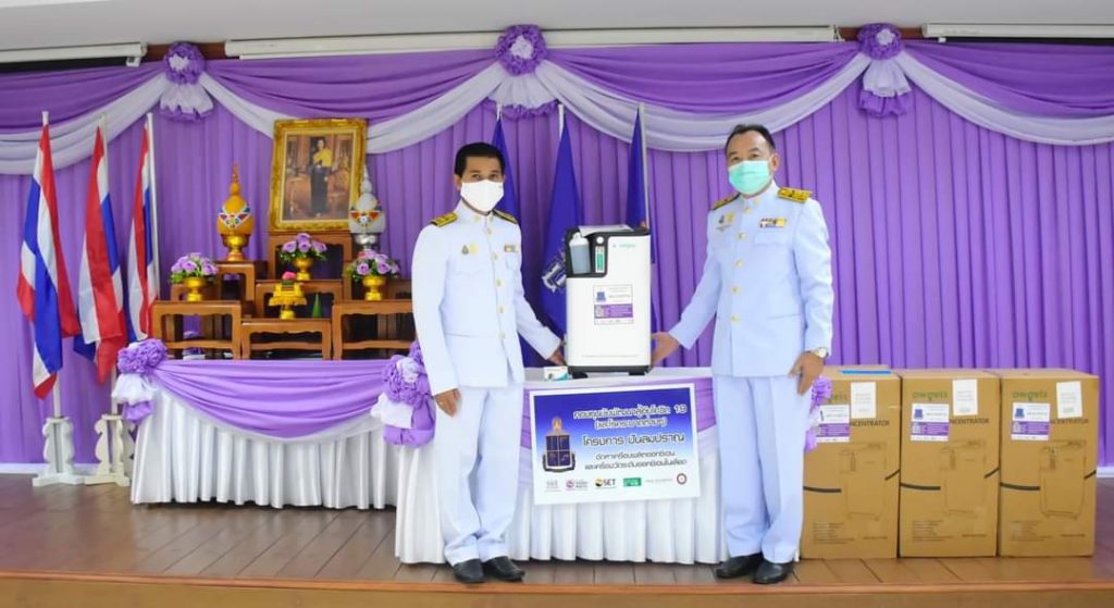 วันที่ 22 ก.ย. 2564 ณ ห้องประชุมวิถีธรรม วิถีไทย สำนักงานสาธารณสุขจังหวัดสิงห์บุรี ได้จัดพิธีรับมอบเครื่องผลิตออกซิเจนพระราชทานขนาด 5 ลิตร จำนวน 3 เครื่อง ซึ่ง สมเด็จพระกนิษฐาธิราชเจ้า กรมสมเด็จพระเทพรัตนราชสุดาฯ สยามบรมราชกุมารี นายกกิตติมศักดิ์และประธานกรรมการมูลนิธิชัยพัฒนา ทรงกรุณาโปรดเกล้าฯ พระราชทานพระราชานุมัติให้ชมรมผู้รับพระราชทานทุนมูลนิธิอานันทมหิดลร่วมกับเอกชน และประชาชนที่มีจิตศรัทธา ร่วมโครงการจัดหาเครื่องวัดระดับออกซิเจนในเลือด และเครื่องผลิตออกซิเจน ภายใต้ชื่อ “โครงการปันลมปราณ” โดยร่วมกับ “กองทุนชัยพัฒนาสู้ภัยโควิด-19 (และโรคระบาดต่างๆ)” จัดซื้อพระราชทานแก่โรงพยาบาลเพื่อแก้ปัญหาการขาดแคลนอุปกรณ์ทางการแพทย์ ช่วยเพิ่มศักยภาพและประสิทธิภาพในการดูแลรักษาผู้ป่วยโรคโควิด-19 โดยมี นายแพทย์จักราวุธ จุฑาสงฆ์ นายแพทย์สาธารณสุขจังหวัดสิงห์บุรี และคณะผู้บริหาร จากสำนักงานสาธารณสุขจังหวัดสิงห์บุรี ร่วมพิธี โดยเครื่องผลิตออกซิเจนที่ได้รับพระราชทาน จำนวน 3 เครื่อง ส่งมอบให้กับโรงพยาบาลบางระจัน เพื่อนำไปใช้สำหรับผู้ป่วยที่มีความผิดปกติเกี่ยวกับการหายใจ หรือผู้ที่ต้องการออกซิเจนเนื่องจากมีปริมาณออกซิเจนในเลือดต่ำจากการป่วยด้วยโรคโควิด-19 ในโรงพยาบาลบางระจันต่อไป
