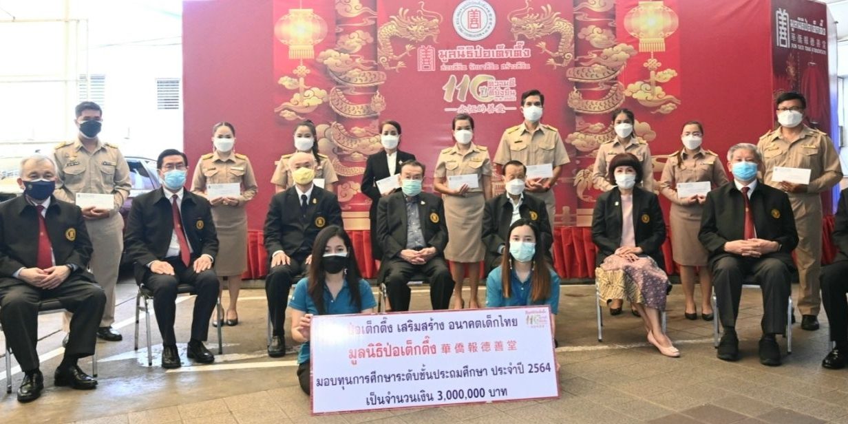 วันนี้ (วันที่ 22 กันยายน 2564) มูลนิธิป่อเต็กตึ๊ง โดย นายวิเชียร เตชะไพบูลย์ ประธานกรรมการ เป็นประธานในพิธี พร้อมด้วย ดร.สุทัศน์ เตชะวิบูลย์ รองประธานกรรมการ นางศิริกุล โอภาสวงศ์ กรรมการและเลขาธิการ และคณะกรรมการมูลนิธิฯ ร่วมในพิธีมอบทุนการศึกษาแก่เยาวชนที่ประพฤติดีแต่ขาดแคลนทุนทรัพย์ในระดับชั้นประถมศึกษา ประจำปี 2564 จำนวนทั้งสิ้น 118 สถาบัน จำนวน 1,500 ทุนๆ ละ 2,000 บาท เป็นจำนวนเงินทั้งสิ้น 3,000,000 บาท (สามล้านบาทถ้วน) เพื่อสนับสนุนให้เยาวชนได้รับโอกาสทางการศึกษาอย่างเท่าเทียมตามที่มุ่งหวัง เติบโตพร้อมมีวิชาความรู้ สร้างอนาคตของตนเองและครอบครัว เป็นคนดีของสังคมและประเทศชาติ อีกทั้งยังเป็นการช่วยเหลือแบ่งเบาภาระของผู้ปกครอง โดยเฉพาะอย่างยิ่งในช่วงสถานการณ์การแพร่ระบาดของโควิด-19 ซึ่งในปีนี้ เนื่องจากสถานการณ์การแพร่ระบาดของโรคติดเชื้อไวรัสโคโรนา 2019 (COVID-19) มูลนิธิฯ ได้มีการปรับเปลี่ยนรูปแบบการมอบทุนฯ โดยประสานกับคุณครูของแต่ละสถาบันเป็นผู้แทนเยาวชนและนัดหมายเข้ารับมอบระหว่างวันที่ 22-24 กันยายน 2564 เพื่อเป็นการป้องกันการแพร่ระบาดของโรค ณ มูลนิธิป่อเต็กตึ๊ง พลับพลาไชย กรุงเทพฯ
