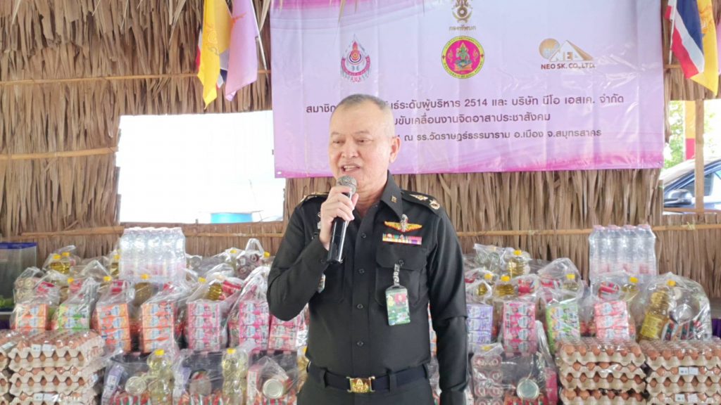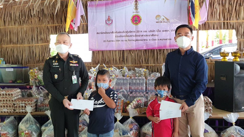 เมื่อเวลา 10.30 น. ของวันที่ 22 กันยายน 2564 พล.ต.ชาญวิทย์ อรรถธีระพงษ์ ผู้อำนวยการสำนักปฏิบัติการจิตวิทยา กรมกิจการพลเรือนทหารบก พร้อมด้วย นายบุรินทร์ สหัสธารากุล กรรมการผู้จัดการ บริษัท นีโอ เอสเค. จำกัด ร่วมกันเป็นประธานในพิธีมอบเครื่องอุปโภค และบริโภค ตลอดจนทุนการศึกษาจำนวน 45 ทุน ให้แก่นักเรียนโรงเรียนวัดราษฎร์ธรรมาราม ต.นาโคก อ.เมือง จ.สมุทรสาคร ณ อาคารเอนกประสงค์โรงเรียนวัดราษฎร์ธรรมาราม โดยมี พล.ต.หญิง อธิษฐาน การพจน์ ตลอดจน ผู้แทน บจก.ไทย ควอตซ์ สโตน สมาชิกพัฒนาสัมพันธ์ระดับผู้บริหาร 2514 หน.ชป.กร , อส.กร. คณะครูและผู้ปกครองนักเรียนที่เข้าร่วมกิจกรรมในครั้งนี้ ซึ่งเป็นความร่วมมือระหว่างสมาชิกพัฒนาสัมพันธ์ระดับผู้บริหาร 2514 กับ บริษัท นีโอ เอสเค.จำกัด ในการขับเคลื่อนงานจิตอาสาประชาสังคม เพื่อช่วยเหลือนักเรียนและผู้ปกครองของนักเรียนโรงเรียนวัดราษฎร์ธรรมาราม ที่ได้รับผลกระทบจากสถานการณ์โควิด 19