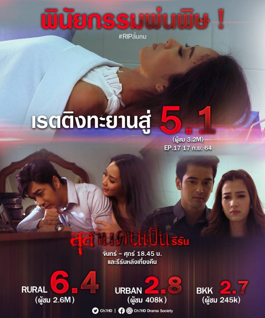 หันมาที่ละครก่อนข่าวภาคค่ำ ทานตะวันสีเพลิง เรื่องราวโรแมนติกดราม่าสุดเข้มข้นจากค่ายปภัสรา โปรดักชั่น ได้นางเอกขวัญใจผู้ชม ชิงชิง-คริษฐา สังสะโอภาส จับคู่กับ อั๋น-อัครพรรฒ บุนนาค สามารถทำเรตติ้งตอนจบสูงถึง 5.3 และการกลับมาอีกครั้งของ นายหัว และ คุณนาย เวียร์-ศุกลวัฒน์ คณารศ และ ฐิสา-วริฏฐิสา ลิ้มธรรมมหิศร จากละคร สัมปทานหัวใจ ค่ายมุมใหม่ เรื่องราวครบรสที่สามารถดึงคนดูให้อินและฟินอีกครั้ง มีเรตติ้งตอนจบอยู่ที่ 4.9 ล่าสุดกับละครที่กำลังโกยเรตติ้ง สุสานคนเป็น จากค่าย กันตนา มูฟวี่ ทาวน์ (2002) ที่กลับมารีรัน ชวนให้หลอนและลุ้นไปกับเรื่องราวความไม่รู้จักพอของมนุษย์ นำทีมโดย ยุ้ย- จีรนันท์ มะโนแจ่ม จั๊กจั่น-อคัมย์ศิริ สุวรรณศุข เจมส์-เรืองศักดิ์ ลอยชูศักดิ์ อ๊อฟ-ชนะพล สัตยา และ แจมมี่-ปาณิชดา แสงสุวรรณ ดันเรตติ้งให้วิ่งขึ้นอันดับ 1 ทุกวัน สามารถทำเรตติ้งในตอน 17 (ข้อมูลวันที่ 17 กันยายน 2564) ไปได้ถึง 5.1 และเชื่อได้ว่าหลังจากนี้ เรตติ้งจะขยับขึ้นไม่หยุด เพราะเรื่องราวที่กำลังเข้มขึ้นขึ้นเรื่อย ๆ แฟนละครห้ามพลาด !
