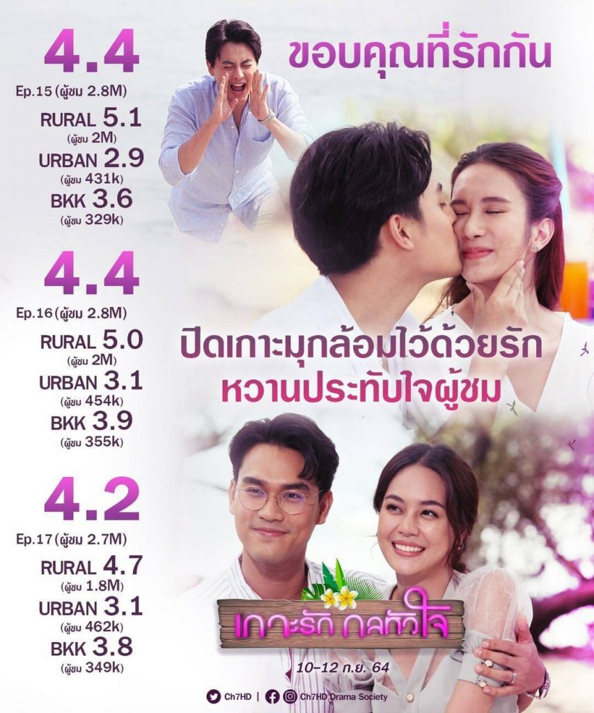 ส่วนละครโรแมนติก ภาพสวย วิวดี เรื่อง เกาะรัก กลหัวใจ จากค่ายดาราวิดีโอ ที่ได้พระนางเจนใหม่ เนย-ปภาดา กลิ่นสุมาลย์ จับคู่กับพระเอกดาวรุ่ง บลิว-วรพล จินตโกศล เป็นครั้งแรก ถ่ายทอดเรื่องราวปัญหาครอบครัว ท่ามกลางเสน่ห์ธรรมชาติที่สวยงามของทะเลไทย ทั้งยังสอดแทรกเรื่องราวการอนุรักษ์ไปพร้อมกัน ทำให้ผู้ชมรู้สึกประทับใจ สร้างรอยยิ้ม และเสียงหัวเราะ โดยมีเรตติ้งสูงสุดตอนก่อนจบ 4.4 และตอนจบ 4.2