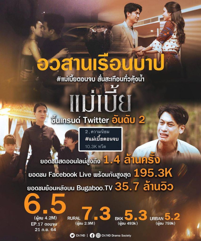 เอ็นเตอร์เทนเม้นท์ การเชือดเฉือนครั้งสำคัญของนักแสดงคุณภาพ เอส – กันตพงศ์ บำรุงรักษ์ นาว – ทิสานาฏ ศรศึก และ รถเมล์-คะนึงนิจ จักรสมิทธานนท์ ละครแห่งสายน้ำ งู ความรัก ความหลัง ความเสน่หาที่ยากจะลืมเลือน ตกหัวใจคนดูอยู่หมัด ทั้งบทละคร นักแสดง โปรดักชั่น และ CG ที่ได้รับคำชมล้นหลามว่าสมจริง เรียกว่าครบทุกองค์ประกอบ สร้างปรากฏการณ์แม่เบี้ยฟีเวอร์ไปทั่วทุกหัวระแหง ทำเรตติ้งวิ่งขึ้นอันดับหนึ่งได้ทุกตอน และสามารถทำเรตติ้งตอนจบสูงถึง 6.5