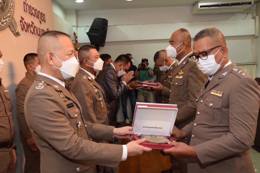 วันที่ 23 ก.ย.64 เวลา 10.00 น. พล.ต.ท.อำพล บัวรับพร ผบช.ภ.1 ให้เกียรติเดินทางเป็นประธานพิธีมอบโล่ประกาศเกียรติคุณแก่ข้าราชการตำรวจที่เกษียณอายุราชการของ บก.ภ.จ.นนทบุรี โดยมี พล.ต.ต.ไพศาล วงศ์วัชรมงคล ผบก.ภ.จ.นนทบุรี,ดร.ชัยรัตน์ จำนงค์การ ผู้ทรงคุณวุฒิฯ-ที่ปรึกษา กต.ตร.ภ.1/ประธานกต.ตร.นนทบุรี (ภาคประชาชน),ดร.พีรวัฒน์ สุรเศรษฐ และ คุณ ฐิติภัทร (ภรรยา) สุรเศรษฐ ประธาน กต.ตร.กทม.(ภาคประชาชน)/ที่ปรึกษา กต.ตร.บช.ภ.1-นนทบุรี,นายทวีศักดิ์ สุทิน,คุณ สุรสีห์ ศรีอินทร์สุทธิ์,คณะรอง ผบก.ภ.จ.นนทบุรี,คณะ กต.ตร.บก.ภ.จ.นนทบุรี,ผกก./หน.สภ. ในสังกัด บก.ภ.จ.นนทบุรี,ข้าราชการตำรวจในสังกัด บก.ภ.จ.นนทบุรี และข้าราชการตำรวจผู้เกษียณอายุราชการ จำนวน 35 นาย เข้าร่วมพิธีฯ ณ ห้องประชุมนนทมุนินท์ ชั้น 3 บก.ภ.จ.นนทบุรี