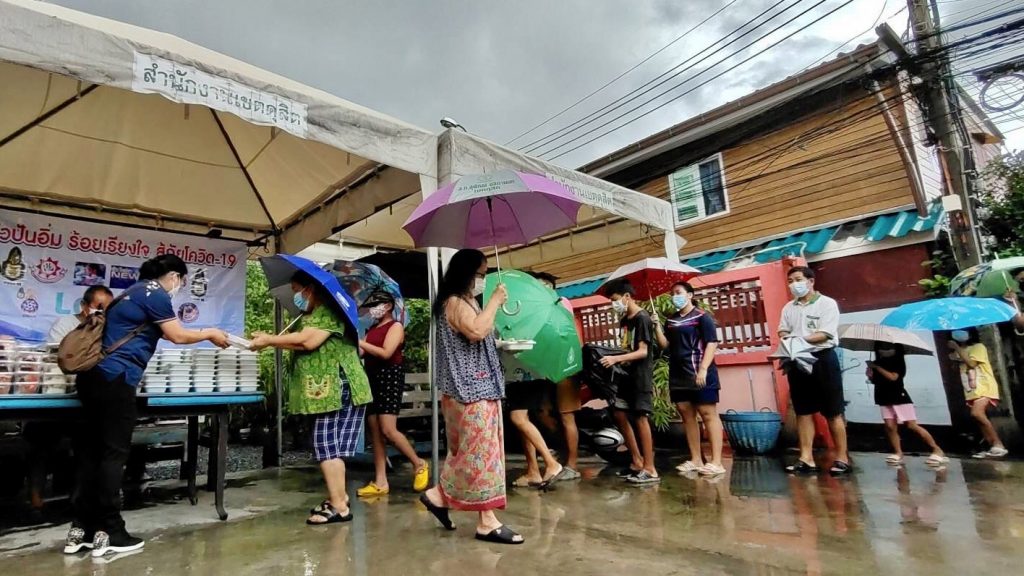 ผู้สื่อข่าวรายงานว่า บรรยากาศการส่งมอบอาหารจากครัวปันอิ่มวันนี้ มีประชาชนทยอยมาต่อคิวเข้ารับบอาหารเป็นจำนวนมาก ส่งผลให้พื้นที่ที่มีการจัดเตรียมไว้รองรับแน่นขนัดตา แม้จะมีฝนเทกระหน่ำลงมา แต่หลายๆคนยังคงตั้งใจต่อคิวเพื่อรอรับอาหาร