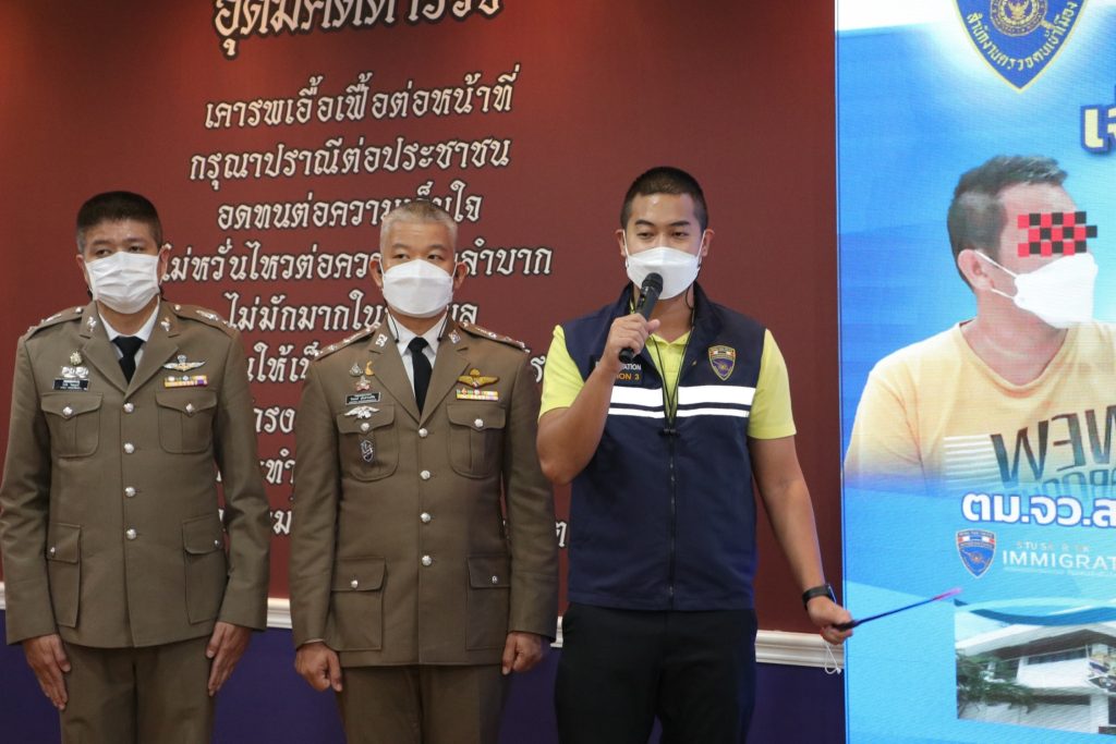 วันที่ 27 ก.ย.64 เวลา 14.00 น.ณ ห้องอเนกประสงค์ ชั้น 1 อาคาร 1 สตม.ซ.สวนพลู แขวงทุ่งมหาเมฆ เขตสาทร กรุงเทพมหานคร : พล.ต.ท.สมพงษ์ ชิงดวง ผบช.สตม.พร้อมด้วย พล.ต.ต.อาชยน ไกรทอง รอง ผบช.สตม.,พล.ต.ต.รุ่งโรจน์ ฐากูรปุณยสิริ ผบก.ตม.3,พ.ต.อ.รัชธพงศ์ เตี้ยสุด รอง ผบก.ตม.3, และพ.ต.อ.จิรพงศ์ รุจิรดำรงค์ชัย ผกก.สส.บก.ตม.3 ร่วมแถลงข่าวการจับกุมคดีที่น่าสนใจ จำนวน 2 คดีดังนี้