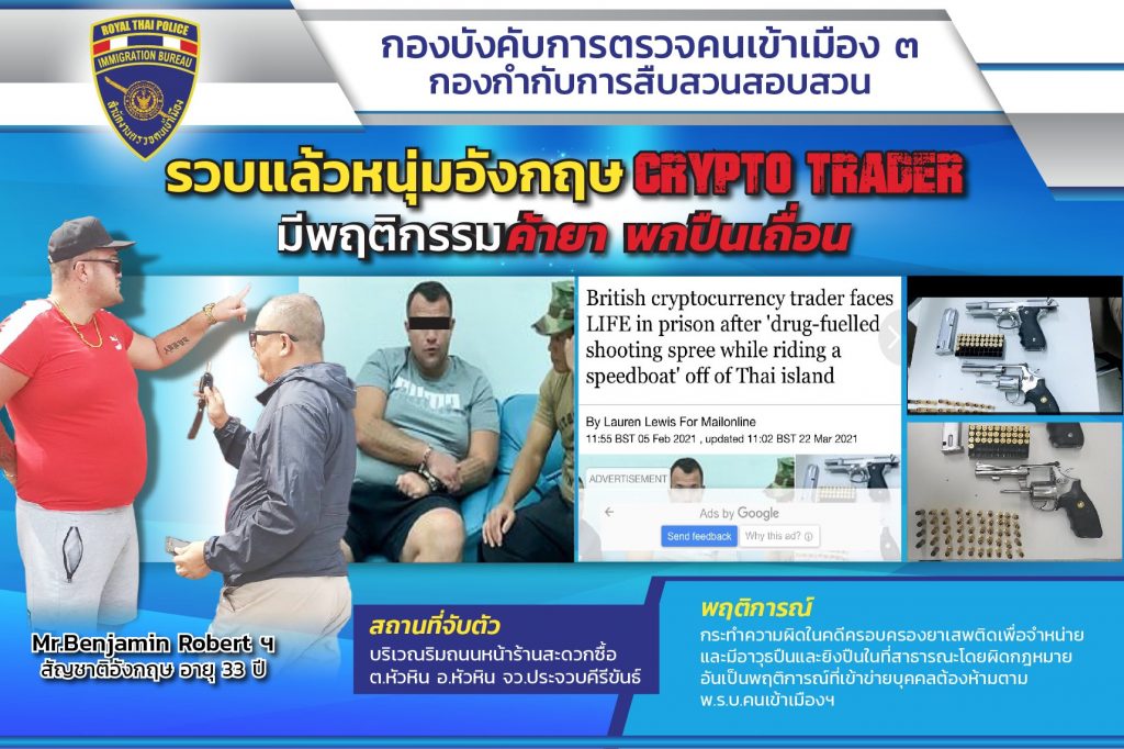 คดีที่ 2.รวบแล้วหนุ่มอังกฤษ crypto trader มีพฤติกรรมค้ายา พกปืนเถื่อน