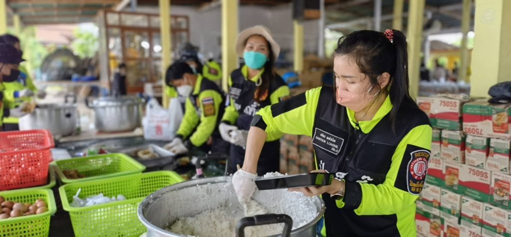 ทีมบรรเทาสาธารณภัย มูลนิธิป่อเต็กตึ๊ง (ชุดที่ 2 : จ.สุโขทัย) นำโดย นายสมบูลย์ ขวัญอ่วม หัวหน้าแผนกบรรเทาสาธารณภัย พร้อมด้วย นายขจรศักดิ์ คงอินทร์ ผู้ควบคุมหน่วยกู้ภัย จัดตั้งโรงครัวเคลื่อนที่ ณ วัดศรีเสวตวนาราม