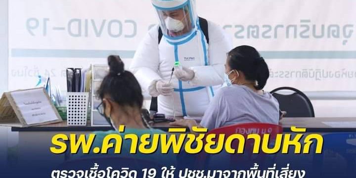 โรงพยาบาลค่ายพิชัยดาบหัก เป็นศูนย์คัดกรอง มทบ.ที่ 35 จุดบริการตรวจหาสารพันธุ์กรรมเชื้อฯโควิด-19 ให้กับประชาชนที่มาจากพื้นที่เสี่ยง และประชาชนที่สัมผัสใกล้ชิดผู้ป่วยยืนยันติดเชื้อ โควิด-19 ตลอด 24 ชั่วโมง โดยเก็บตัวอย่าง ส่งตรวจจากโพรงจมูกด้านหลัง เพื่อนำไปตรวจวิเคราะห์โดยใช้วิธีการตรวจแบบ Antigen Test Kid (ATK) หากผลเป็นบวก จะดำเนินการตรวจหาสารพันธุกรรมของเชื้อโควิด-19 (RT-PCR) ที่แผนกพยาธิวิทยา รพ.ค่ายพิชัยดาบหัก เพื่อยืนยันผลการติดเชื้อ โดยมีการดำเนินการตรวจไปแล้วกว่า 5,293 ราย พบเชื้อไปแล้วกว่า 937 ราย