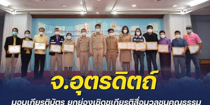 นายสุรพันธ์ เจริญทรัพย์ วัฒนธรรมจังหวัดอุตรดิตถ์ เปิดเผยว่า ตามมติคณะอนุกรรมการส่งเสริมคุณธรรมจังหวัดอุตรดิตถ์ ในการประชุมครั้งที่ 2/2564 ไปเมื่อวันที่ 17 สิงหาคม 64 เห็นซอบให้ยกย่องเชิดชูเกียรติสื่อมวลชนในอุตรดิตถ์ ที่ร่วมขับเคลื่อนแผนแม่บทส่งเสริมคุณธรรมของจังหวัดอุตรดิตถ์ ภายใต้แผนแม่บทส่งเสริมคุณธรรมแห่งชาติ ฉบับที่ 1 (พ.ศ. 2559-2564 ) ตามนโยบายของรัฐบาลอย่างต่อเนื่อง โดยการนำเสนอข่าวเชิงบวก เชิงสร้างสรรค์ ส่งเสริมความดี ส่งเสริมคนดี มีคุณธรรม ของจังหวัดอุตรดิตถ์ เป็นสื่อปลอดภัยและสร้างสรรค์ทุกช่องทางและทุกประเภทนั้น เพื่อผลักดันให้จังหวัดอุตรดิตถ์เป็นจังหวัดคุณธรรม โดยมีการขับเคลื่อนทั้งในระบบชุมชน องค์กร อำเภอและจังหวัด