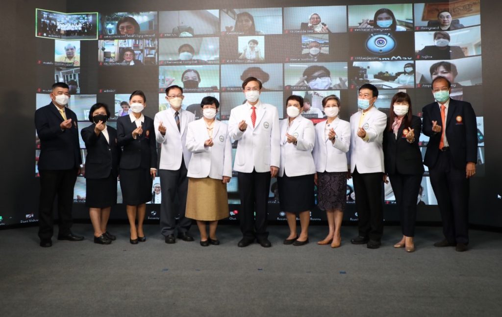 จากนั้นเป็นการกล่าวแสดงความยินดีต่อคณะแพทยศาสตร์ผ่าน Clip VDO โดยอธิการบดีมหาวิทยาลัยกรุงเทพธนบุรี รศ.ดร.บังอร เบ็ญจาธิกุล จากนั้น ต่อด้วยคณบดีคณะแพทยศาสตร์