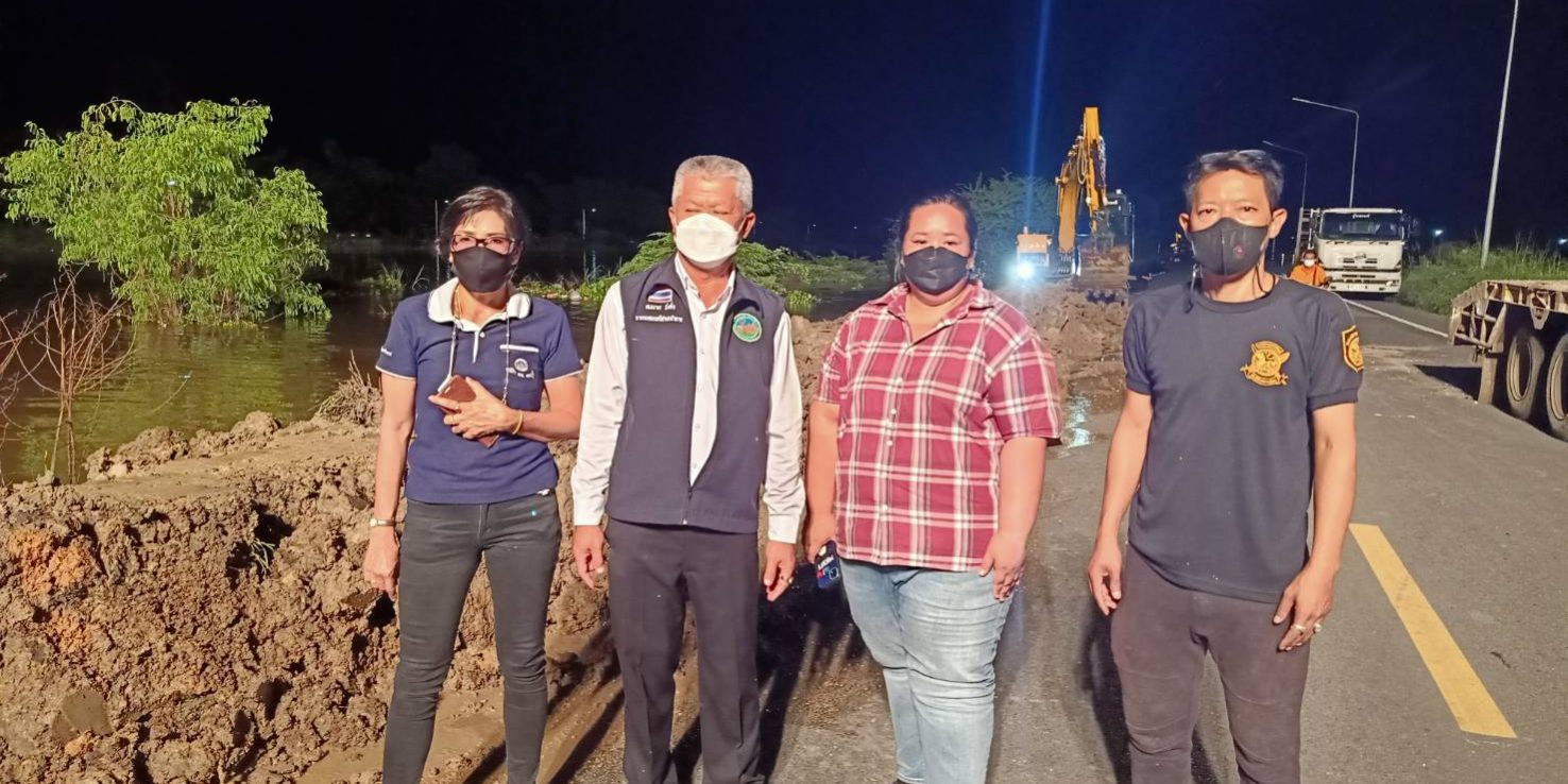 เมื่อวันที่ ๓๐ กันยายน ๒๕๖๔ นายสมมาส มั่งคั่ง นายกเทศมนตรีตำบลป่าตาล พร้อมด้วยคณะผู้บริหารเทศบาล สมาชิกสภาเขตเทศบาล นายเกรียงศักดิ์ เพิ่มพูน ปลัดเทศบาล นำทีมงานกองช่างเทศบาลตำบลป่าตาล เข้าเสริมสร้างคันกั้นดินน้ำบริเวณริมคลองชลประทานชัยนาท-ป่าสัก พร้อมทั้งอุดรอยรั่วซึมบริเวณริมถนนทั้งสองฝั่งคลอง โดยนำรถแบคโฮ จำนวน ๓ คัน ปฏิบัติงานตลอดทั้งวัน และเทศบาลตำบลป่าตาลกำลังเร่งแก้ไขปัญหาน้ำเอ่อล้นเนื่องจากปริมาณมวลน้ำจากเจ้าพระยาตอนบน ระดับน้ำยังคงไหลมาและเพิ่มขึ้นสูงอย่างต่อเนื่อง โดยมีทีมวิศวกรจากสำนักงานป้องกันและบรรเทาสาธารณภัยจังหวัดลพบุรีมาคอยให้คำปรึกษา และเมื่อเวลา ๑๙.๐๐ น. นายสินาทร โอ่เอี่ยม นายอำเภอเมืองลพบุรี เข้ามาตรวจเยี่ยมดูสถานการณ์น้ำรั่วซึมบริเวณหน้าศาลเยาวชน และบริเวณถนนเลียบคลองชลประทานฝั่งตำบลป่าตาล