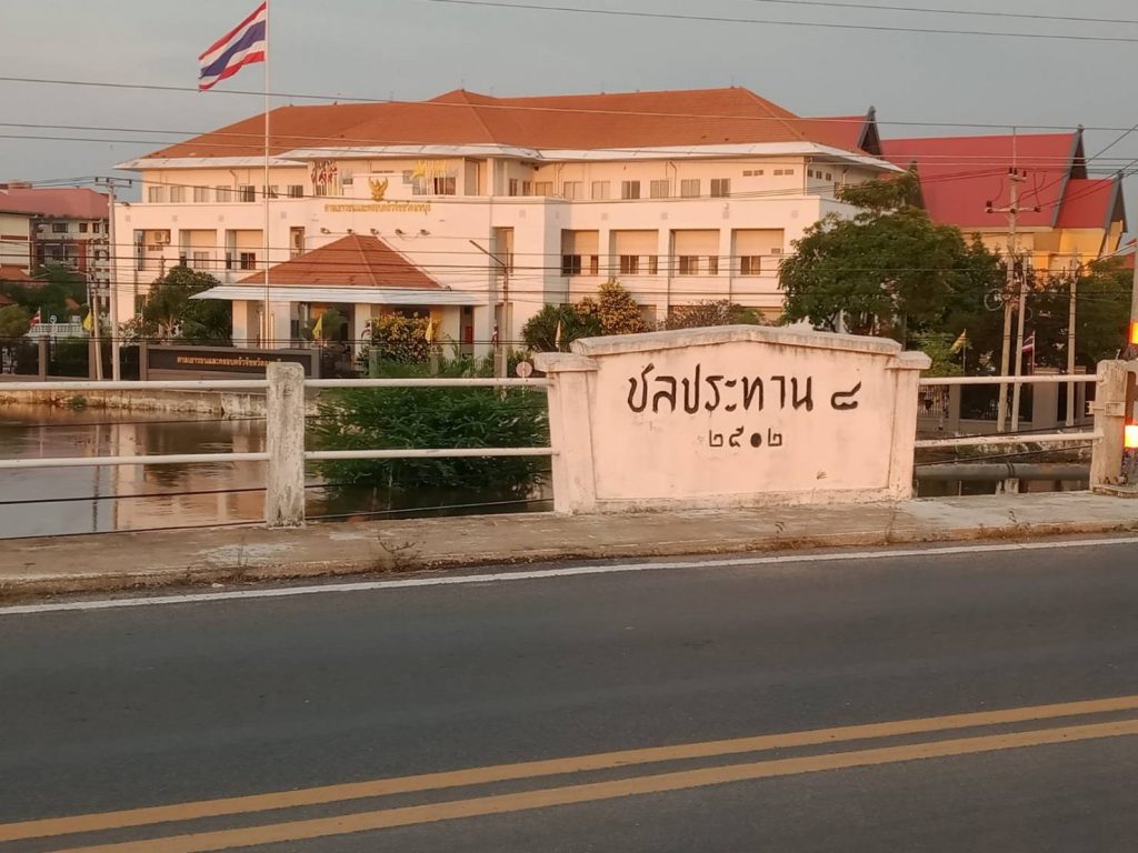 คลองชลประทานชัยนาท ป่าสัก น้ำล้นตลิ่งไหลเข้า บริเวณ ศาลเยาวชนและครอบครัวจังหวัดลพบุรี น้ำไหลเข้าลานจอดรถบริเวณศาลฯ ประมาณ 1 เซนติเมตร ตรงสะพานข้ามคลองชัยนาท ป่าสัก(สะพาน8) พื้นที่ตำบลป่าตาล อำเภอเมือง จังหวัดลพบุรี