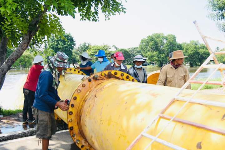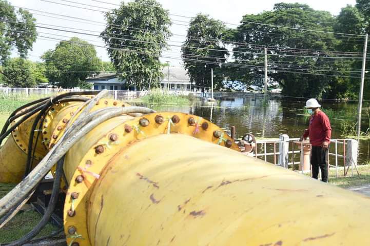 สำนักงานชลประทานที่ 10 ร่วมกับสำนักเครื่องจักรกล เร่งดำเนินการติดตั้งเครื่องสูบน้ำไฮดรอลิค ขนาด 3 ลบ.ม./วินาที ขนาดเส้นผ่าศูนย์กลาง 42 นิ้ว จำนวน 1 เครื่อง บริเวณหน้าการประปาส่วนภูมิภาค สาขาลพบุรี หรือบริเวณคลองระบายเลียบคลองชัยนาท-ป่าสัก ฝั่งซ้าย ซึ่งสามารถสูบน้ำได้ประมาณ 260,000 ลบ.ม./วัน โดยสูบน้ำจากฝั่งซ้ายลงคลองชัยนาท-ป่าสัก เพื่อบรรเทาความเดือดร้อนของพี่น้องประชาชนในพื้นที่ หมู่ 3 และหมู่ 9 ตำบลเขาพระงาม อำเภอเมือง จังหวัดลพบุรี