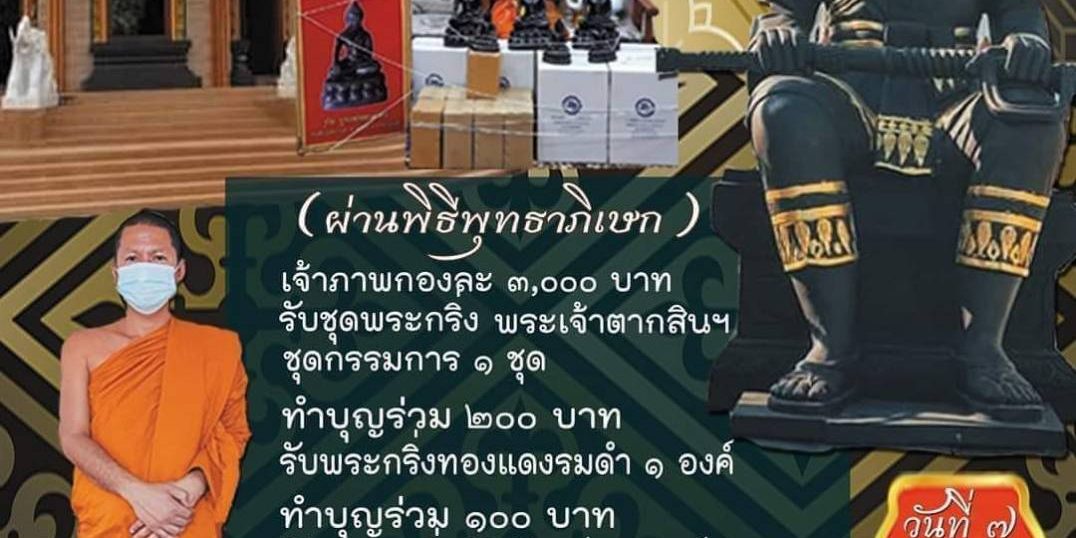 วันที่ ๗ พฤศจิกายน ๒๕๖๔ เวลา ๑๐.๐๐ น. เจ้าภาพกองละ ๓,๐๐๐ บาท รับชุดพระกริ่งพระเจ้าตากสินมหาราชชุดกรรมการ ๑ ชุด