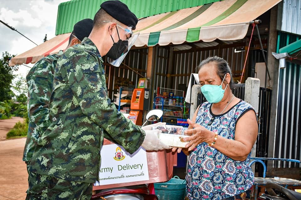 วันที่ 4 ตุลาคม 2564 ที่ค่ายพระยอดเมืองขวาง ตำบลกุรุคุ อำเภอเมือง จังหวัดนครพนม ผู้สื่อข่าวรายงานว่า จากสถานการณ์ไวรัสโควิด-19 ส่งผลกระทบต่อพี่น้องประชาชนเป็นวงกว้าง ประชาชนต้องบางคนตกอยู่ในภาวะลำบาก ขาดแคลนอาหาร บริเวณรอบค่ายพระยอดเมืองขวางที่ไม่สามารถเดินทางออกมารับความช่วยเหลือจากหน่วยงานทั้งภาครัฐ และเอกชนได้ กองพันทหารราบที่ 3 กรมทหารราบที่ 3 โดย พันโท ศรณณัฐ นวลมณี ผู้บังคับกองพันทหารราบที่ 3 กรมทหารราบที่ 3 (ผบ.ร.3 พัน.3) ดำเนินโครงการ “Army Delivery” ส่งมอบอาหารปรุงสุกฟรี!!!ถึงบ้าน โดยให้กำลังพลจัดกิจกรรม เพื่อช่วยเหลือบรรเทาทุกข์ และให้กำลังใจประชาชนผู้ได้รับผลกระทบจากสถานการณ์การแพร่ระบาดของเชื้อไวรัสโควิด-19 ตามนโยบายของผู้บัญชาการทหารบก (ผบ.ทบ.) ที่ให้หน่วยขึ้นตรงดำเนินการดูแลช่วยเหลือประชาชนที่ได้รับผลกระทบจากสถานการณ์ไวรัสโควิด-19 อย่างต่อเนื่อง ตามศักยภาพของหน่วยในการช่วยเหลือประชาชน ในรูปแบบโครงการ “Army Delivery” โดยการจัดรถจักรยานยนต์ส่งอาหาร ให้พี่น้องประชาชนถึงที่พักอาศัย ซึ่งได้ทำการแจกจ่ายไป จำนวน 100 ชุด ในพื้นที่บริเวณชุมชนรอบค่ายพระยอดเมืองขวาง และพื้นที่ใกล้เคียง โดย “Army Delivery” จะมีการติดตั้งกล่องอเนกประสงค์ ใส่อาหารกล่องเข้ากับบรรจุกล่องอาหาร รถจักรยานยนต์ เพื่อช่วยเหลือบรรเทาทุกข์ และให้กำลังใจประชาชนผู้ได้รับผลกระทบโควิด -19