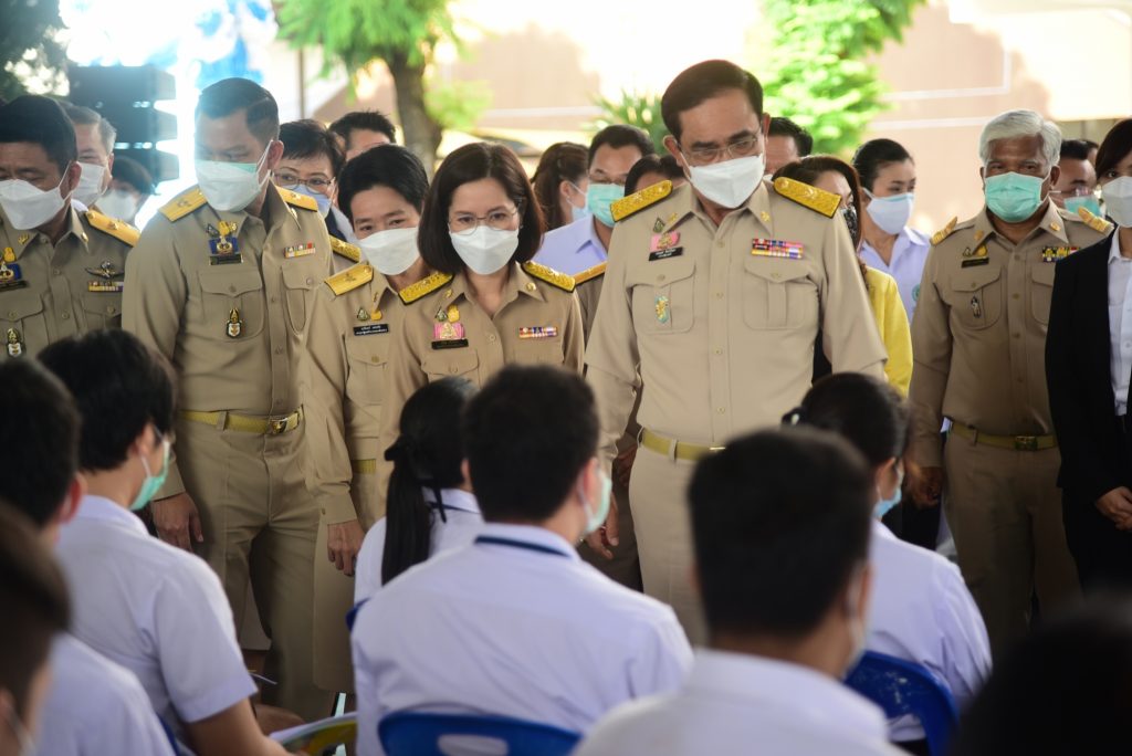 วันที่ 4 ตุลาคม 2564 : พลเอก ประยุทธ์ นายกรัฐมนตรี และรัฐมนตรีว่าการกระทรวงกลาโหม เป็นประธานในพิธี “Kick Off สร้างเกราะป้องกันด้วยวัคซีน เด็กปลอดภัย เรียนอุ่นใจ ต้อนรับเปิดเทอม” เพื่อฉีดวัคซีนไฟเซอร์เข็มแรกให้นักเรียนระหว่างอายุ 12-18 ปี พร้อมด้วย นางสาวตรีนุช เทียนทอง รัฐมนตรีว่าการกระทรวงศึกษาธิการ(รมว.ศธ.),คุณหญิงกัลยา โสภณพนิช รัฐมนตรีช่วยว่าการกระทรวงศึกษาธิการ(รมช.ศธ),นายสาธิต ปิตุเตชะ รัฐมนตรีช่วยว่าการกระทรวงสาธารณสุข(รมช.สธ.),นายสุทธิชัย จรูญเนตร ที่ปรึกษา รมว.ศธ.,นางสาวอรพินทร์ เพชรทัต เลขานุการ รมว.ศธ.,นายอนุชา บูรพชัยศรี เลขาธิการนายกรัฐมนตรีฝ่ายการเมือง,นายกมล รอดคล้าย ที่ปรึกษา รมช.ศธ. (นางกนกวรรณ วิลาวัลย์) ตลอดจนผู้บริหารระดับสูงกระทรวงศึกษาธิการ และกระทรวงสาธารณสุข โดยมีโรงเรียนใน 13 เขตสุขภาพทั่วประเทศ เข้าร่วมผ่านโปรแกรม Zoom Cloud Meetings ณ โรงเรียนพิบูลย์อุปถัมภ์ กรุงเทพมหานคร