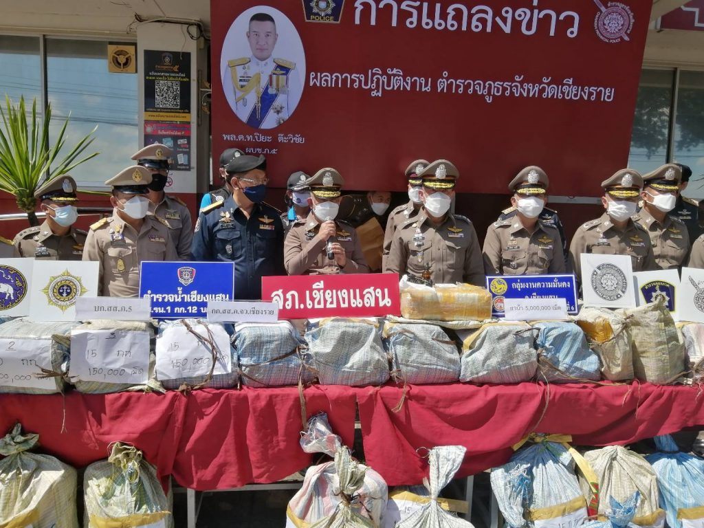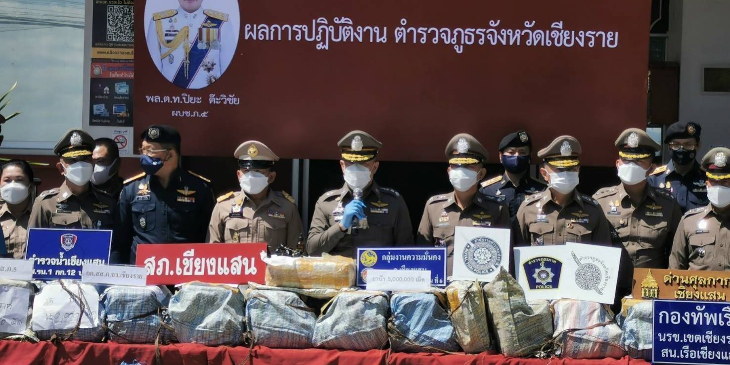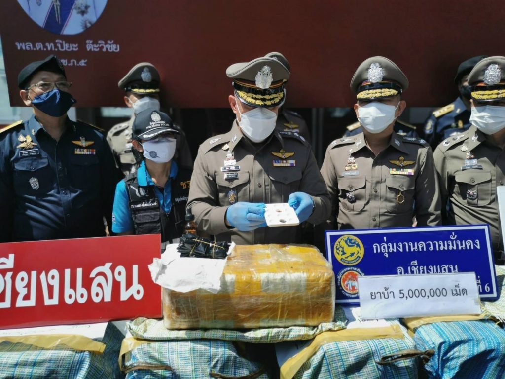 โดยกองบัญชาการตำรวจภูธรภาค 5 สามารถจับกุมขบวนการลักลอบขนยาเสพติด ได้จำนวน 6 คน ที่บริเวณ ถนนสายแม่จัน-เชียงแสน-วงเวียนนครเชียงแสน ต.เวียง อ.เชียงแสน จ.เชียงราย พร้อมของกลางยาบ้า ประมาณ 5,000,000 เม็ด (ห้าล้านเม็ด) ผู้ต้องหาประกอบด้วย นายวีรพล ลอซัง อายุ27 (คนขับรถกระบะ ผก 9636 เชียงราย ที่บรรทุกยาเสพติด),นายจะอีโบ ละหู่นะ อายุ 24 ปี (โดยสารมากับผู้ต้องหาที่ 1),นายชนิษฐ์ พงศ์ทวีเดช อายุ 36 ปี (คนขับรถกระบะ กพ 4760 เชียงราย สำรวจเส้นทาง),นายธีรเดช คิดดี อายุ 37 ปี (คนขับรถกระบะ ผค 9673 เชียงราย สำรวจเส้นทาง),นายชยากร ลาหู่นะ อายุ 27 ปี (โดยสารมากับผู้ต้องหาที่ 4) และ นายจะเดอ ลิสี อายุ 21 ปี (คนขี่รถจักรยานยนต์สำรวจเส้นทาง)