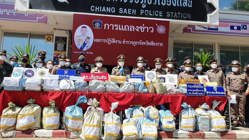 วันที่ 6 ตุลาคม 2564 เวลา 11.00 น. พล.ต.ท.ปิยะ ต๊ะวิชัย ผบช.ภ.5 พร้อมด้วย พล.ต.ต.พฤทธิพงษ์ ประยูรศิริ รอง ผบช.ภ.5,พล.ต.ต.วีรชน บุญทวี รอง ผบช.ภ.5,พล.ต.ต.วรพงค์ คำลือ ผบก.บก.สส.ภ.5,พล.ต.ต.ชินวิช วิชัยธนพัฒน์ ผบก.ภ.จ.เชียงราย,พ.ต.อ. พงษ์สวัสดิ์ ไชยบาล รอง ผบก.ภ.จ.เชียงราย,พ.ต.อ.รัฐพล น้อยช่างคิด ผกก.สส.ภ.จ.เชียงราย,พ.ต.อ.ถนัด ชุ่มมะโน ผกก.สภ.เชียงแสน ร่วมกับเจ้าหน้าที่ ปปส.,ทหารและ ฝ่ายปกครอง