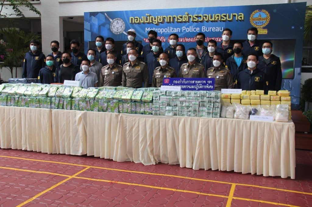 รายแรก 191 สามารถจับกุมผู้ต้องหา จำนวน 3 ราย คือ นาย ลักษ์นัฐ นักดนตรี (แอ้) อายุ 31 ปี,นายชยากร โสภณศิริ (ท๊อป) อายุ 25 ปี และ นายยุทธภพ แสงภู (ปอนด์) อายุ 24 ปี พร้อมด้วยของกลาง ไอซ์ประมาณ 400 กิโลกรัม,เคตามีนประมาณ 160 กิโลกรัม,เครื่องกระสุนปืน ขนาด 9 มม.จำนวน 48 นัด,รถยนต์กระบะ ยี่ห้อ Ford Ranger สีเทาหมายเลขทะเบียน 1 ฒภ 7257 กทม.รวมมูลค่าประมาณ 176,000,000 บาท