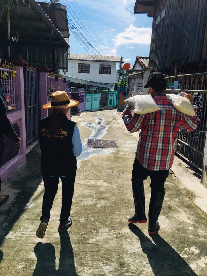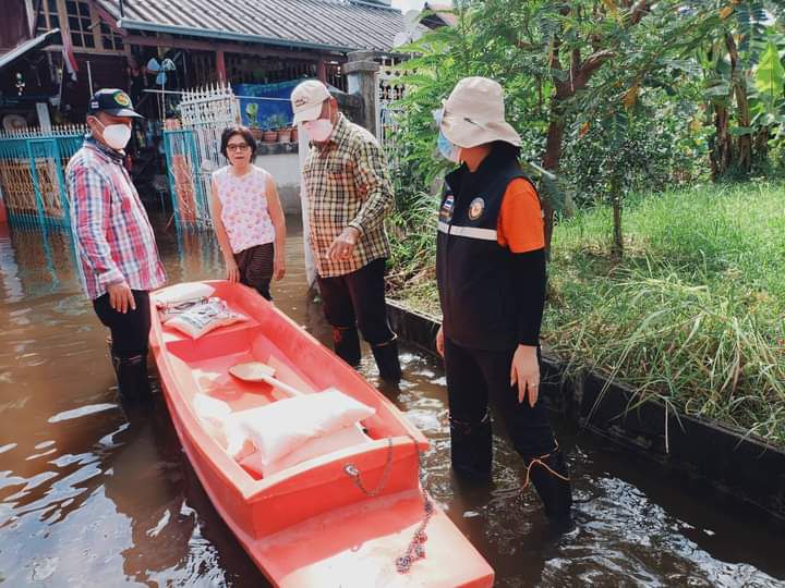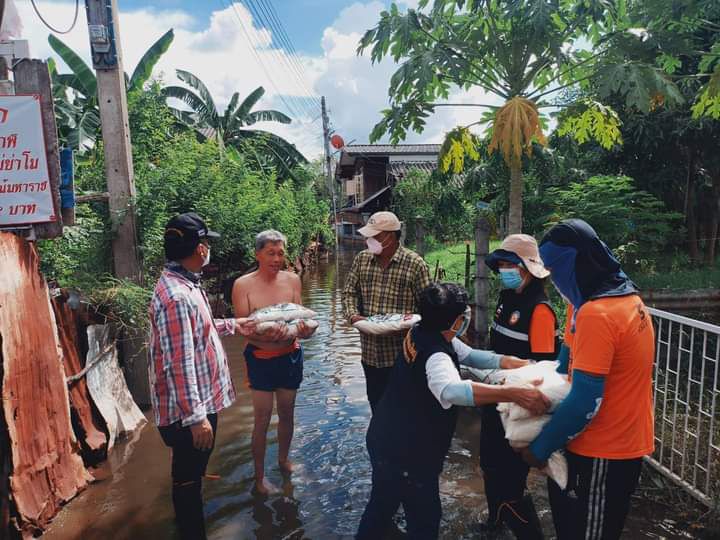 พื้นที่น้ำท่วมเขตเทศบาลตำบลถนนใหญ่ มอบข้าวสาร ฯ เพื่อบรรเทาความเดือดร้อนให้กับครอบครัวที่ถูกน้ำท่วม