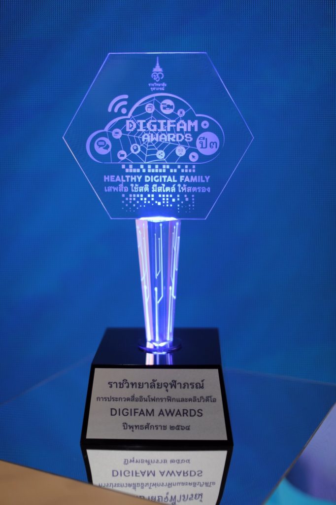 การประกวดผลิตสื่อคลิปวิดีโอและอินโฟกราฟิก DigiFam Awards ครั้งที่ 3 เป็นอีกกิจกรรมหนึ่งในโครงการ “เสพสื่อ ใช้สติ มีสไตล์ ให้สตรอง Healthy Digital Family” ที่ราชวิทยาลัยจุฬาภรณ์จัดขึ้น เพื่อเปิดโอกาสให้นักเรียน นักศึกษาและประชาชนใช้ความรู้และความเข้าใจเรื่องการใช้สื่อออนไลน์อย่างสร้างสรรค์และมีประสิทธิภาพมานำเสนอเป็นผลงานที่จะสร้างความตระหนักรู้ถึงผลกระทบและอันตรายจากการใช้สื่อออนไลน์ และเพื่อเสริมสร้างความปลอดภัยและความสงบสุขในสังคม