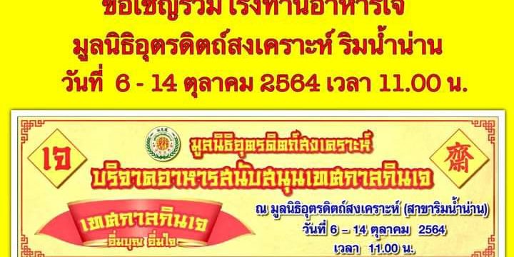 ช่วงนี้เป็นช่วงของเทศกาลกินเจมูลนิธิอุตรดิตถ์สงเคราะห์ ทำอาหารบริจาคภายใต้ชื่อ โครงการ