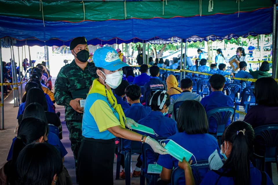 __วันที่ 7 ตุลาคม 2564 ที่ค่ายพระยอดเมืองขวาง ตำบลกุรุคุ อำเภอเมือง จังหวัดนครพนม ผู้สื่อข่าวรายงานว่า พันโท ศรณณัฐ นวลมณี ผู้บังคับกองพันทหารราบที่ 3 กรมทหารราบที่ 3 (ผบ.ร.3 พัน.3) มีความห่วงใยจากสถานการณ์แพร่ระบาดโควิด -19 ในปัจจุบันที่ถือว่ายังเป็นวิกฤตสำคัญ จึงได้ร่วมอำนวยความสะดวกในการจัดยานพาหนะ พร้อมเจ้าหน้าที่ ในการรับ-ส่งนักเรียน พร้อมเจ้าหน้าที่เสนารักษ์ของหน่วยสนับสนุน โรงเรียนบ้านผึ้งวิทยาคม ตำบลบ้านผึ้ง อำเภอเมือง จังหวัดนครพนม เพื่อเข้ารับการฉีดวัคซีนป้องกัน Covid -19 ตามที่ได้รับการประสานจากโรงเรียนบ้านผึ้งวิทยาคม เพื่อเดินทางเข้ารับการฉีดวัคซีนเพื่อป้องกันการแพร่ระบาดเชื้อ COVID-19 เนื่องจากมีกลุ่มนักเรียนที่ยังไม่ได้รับการฉีดวัคซีนในพื้นที่ โดยอำนวยความสะดวกจัดยานพาหนะในการรับ-ส่งกลุ่มนักเรียนจากจุดรับจากโรงเรียนบ้านผึ้งวิทยาคม ตำบลบ้านผึ้ง อำเภอเมือง จังหวัดนครพนม ไปยังศาลาประชาคมยงใจยุทธ บริเวณศาลากลางจังหวัดนครพนม ณ หอประชุมยงใจยุทธ ศาลากลาง จ.นครพนม