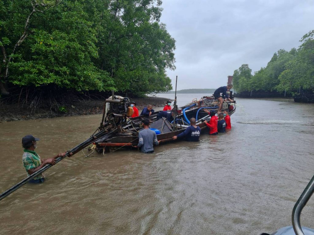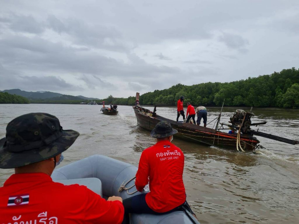 วันนี้ 8 ตุลาคม 2564 หน่วยเฉพาะกิจเพื่อแก้ไขปัญหาด้านความมั่นคงในพื้นที่ภาคใต้ ศรชล.ภาค 3 (นก.กมต.ศรชล.ภาค 3) จังหวัดสตูล นก.กมต.ศรชล.ภาค 3 โดย หน่วยรักษาความปลอดภัยทางทะเล กองทัพเรือ เกาะหลีเป๊ะ ได้รับแจ้งเมื่อวันที่ 6 ตุลาคม 2564 เมื่อเวลาประมาณ 20.50 น.ว่าเกิดเหตุเรือประมงพื้นบ้านจมขณะทำการประมง บริเวณปากร่องคลองละงู มีลูกเรือ 2 คน จึงได้จัดกำลังพลพร้อมเรือ RIB ออกช่วยเหลือลูกเรือ 2 คน ได้อย่างปลอดภัย และทำการกู้เรือ โดยการลากดึงเข้าที่ตื้น จนถึงเวลาประมาณ 22.45 น.ยังไม่สามารถ กู้เรือได้ เนื่องจากกระแสน้ำแรงและเครื่องยนต์มีน้ำหนักมาก จึงได้ยุติภารกิจ ต่อมาในวันที่ 7 ตุลาคม 2564 เวลา 06.00 น.นรภ.ทร.เกาะหลีเป๊ะ/สน.เรือละงู จัดกำลังพร้อมเรือ RIB ทำการกู้เรือ โดยการพลิกเรือขึ้น และทำการวิดน้ำออกจากเรือ แต่เนื่องจากระดับน้ำเริ่มขึ้นสูงและเข้ากราบเรือทำให้ไม่สามารถดำเนินการจนเสร็จได้ จึงทำการลากเรือไปไว้ที่ตื้นริมฝั่ง และจะนำเครื่องสูบน้ำเคลื่อนที่มาสูบน้ำออกจากตัวเรือต่อไปทั้งนี้ เรือ ต.996 เรือ ต.111 และ เรือ ต.234 จอดเรือพร้อมรับสถานการณ์ ตลอด 24 ชม.และหน่วยต่าง ๆ เตรียมเรือและกำลังพลพร้อมรับสถานการณ์ ตลอด 24 ชม.