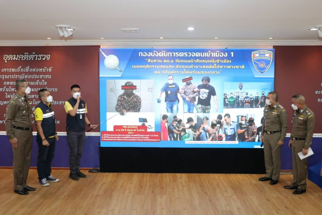 จากการสอบถามคำให้การในชั้นจับกุม ผู้ถูกจับรับว่าซื้อยาเสพติดดังกล่าวมาจากหญิงไทยในย่านรามคำแหง โดยนำมาจำหน่ายต่อเพื่อหวังกำไรจากส่วนต่างราคา เนื่องจากมีกลุ่มลูกค้าที่ไว้วางใจเป็นชาวต่างชาติในย่านธุรกิจ (CBD) ของกรุงเทพมหานคร ซึ่งเลือกที่จะทำการติดต่อซื้อขายยาเสพติดกับชาวต่างชาติด้วยกัน โดยยอมให้ราคาสูงกว่าราคาตลาด นอกจากนี้จากการตรวจสอบเอกสารประจำตัวพบหนังสือเดินทางของผู้ถูกจับ ทราบชื่อคือ นายจอร์จ อายุ 28 ปี สัญชาติไนจีเรีย ถือหนังสือเดินทางเล่มเปล่า ไม่ปรากฏรอยตราประทับ หรือรอยการตรวจลงตราใดๆ ในหนังสือเดินทาง เจ้าหน้าที่จึงได้ทำการตรวจสอบจากฐานข้อมูลสารสนเทศตรวจคนเข้าเมือง และฐานข้อมูลไบโอเมตริกซ์ ไม่พบข้อมูลประวัติการเดินทางเข้าออกผ่านช่องทางด่านตรวจคนเข้าเมืองแต่อย่างใด ในเบื้องต้นเจ้าหน้าที่ตำรวจจึงได้แจ้งข้อกล่าวหาว่า “มียาเสพติดให้โทษประเภทที่ 1 ไว้ในครอบครองเพื่อจำหน่าย,มียาเสพติดให้โทษประเภทที่ 2 ไว้ในครอบครอง และเป็นบุคคลต่างด้าว เข้ามาและอยู่ในราชอาณาจักรโดยผิดกฎหมาย” นำตัวส่งพนักงานสอบสวนดำเนินคดีตามกฎหมาย ในส่วนของบุคคลอื่นๆ ที่อาจเกี่ยวข้องหรือพัวพันกับขบวนการค้ายาเสพติดของชาวต่างชาติ ทาง กก.สส.บก.ตม.1 ได้ทราบข้อมูลบางส่วนแล้ว ซึ่งจะได้สืบสวนติดตามขยายผลจับกุมต่อไป