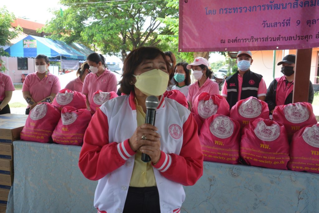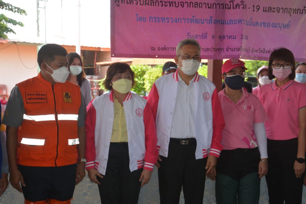 วันนี้ 9 ตุลาคม 2564 ที่บริเวณศาลาเอนนกประสงค์ อบต.ประศุก นางพัชรี อาระยะกุล ปลัดกระทรวงพัฒนาสังคมและความมั่นคงของมนุษย์ (ปพม.) และคณะผู้บริหาร เดินทางมามอบถุงยังชีพเพื่อส่งมอบความห่วงใยจากกระทรวฯเพื่อนำไปแจกจ่ายแก่ประชาชนในในพื้นที่ตำบลประศุก อำเภออินทร์บุรี จังหวัดสิงห์บุรี จำนวน 200 ราย โดยมีนายสมชาย ลีหล้าน้อย, นางศิริลักษม์ เหมาะพิชัย นายอำเภออินทร์บุรี, นางเตือนใจ คงสมบัติ พัฒนาสังคมและความมั่นคงของมนุษย์จังหวัดสิงห์บุรี, ข้าราชการและเจ้าหน้าที่สำนักงานพัฒนาสังคมและความมั่นคงของมนุษย์จังหวัดสิงห์บุรี ร่วมรับมอบถุงยังชีพความห่วงใยจากปลัดกระทรวงพัฒนาสังคมและความมั่นคงของมนุษย์เพื่อส่งต่อให้ผู้ประสบอุทกภัย ซึ่งจังหวัดสิงห์บุรี ได้ประกาศพื้นที่ประสบภัยพิบัติเนื่องจากอุทกภัย จำนวน 5 อำเภอ จากทั้งหมด 6 อำเภอ รวม 19 ตำบล 6 ชุมชน 72 หมู่บ้าน 5,652 ครัวเรือน 17,330 ราย
