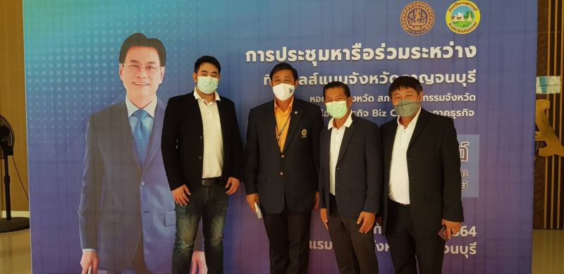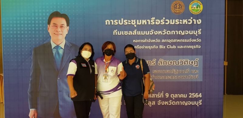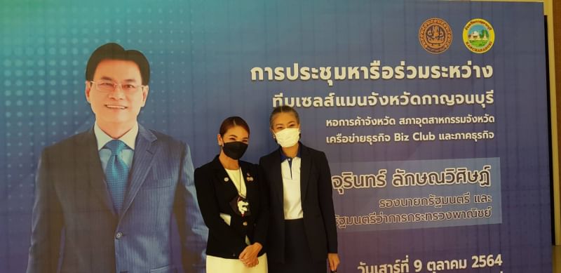 วันนี้ ( 9 ตุลาคม 2564 ) เวลา 13.30 น. ที่โรงแรมพีลูส อำเภอเมือง จังหวัดกาญจนบุรี นายจุรินทร์ ลักษณวิศิษฏ์ รองนายกรัฐมนตรีและรัฐมนตรีว่าการกระทรวงพาณิชย์ ลงพื้นที่จังหวัดกาญจนบุรี พร้อมผู้บริหารระดับสูงและคณะ ในการประชุมหารือร่วมระหว่างภาครัฐ ภาคเอกชน ในจังหวัดกาญจนบุรี ในประเด็นความต้องการให้กระทรวงพาณิชย์ดูแลและสนับสนุนช่วยเหลือด้านการส่งเสริมเศรษฐกิจในทุกด้าน พร้อมด้วย ร้อยโท ทศพล ไชยโกมินทร์ รองผู้ว่าราชการจังหวัดกาญจนบุรี นายผกายเนติ์ เล่งอี้ พาณิชย์จังหวัดกาญจนบุรี ทีมเซลส์แมนจังหวัดกาญจนบุรี หอการค้าจังหวัดกาญจนบุรี สภาอุตสาหกรรมจังหวัดกาญจนบุรี สภาอุตสาหกรรมการท่องเที่ยวจังหวัดกาญจนบุรี กลุ่มเครือข่ายุรกิจ Biz Club จังหวัดกาญจนบุรี และภาคธุรกิจในจังหวัดกาญจนบุรี เข้าร่วม