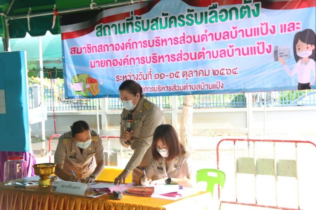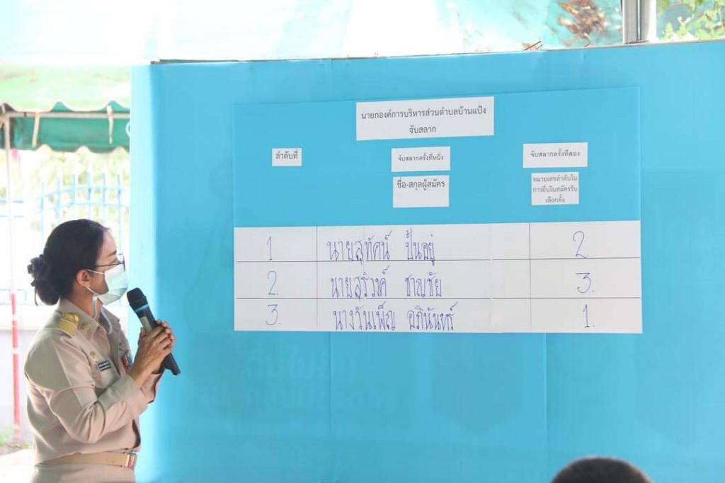 บรรยากาศการรับสมัคร เลือกตั้งสมาชิกสภาองค์การบริหารส่วนตำบลและนายกองค์การบริหารส่วนตำบล วันแรกของการรับสมัคร ที่ อบต.บ้านแป้ง อ.พรหมบุรี จังหวัดสิงห์บุรี เป็นไปด้วยความคึกคักมีกองเชียร์ตามมาให้กำลังใจผู้สมัครทั้งหน้าเก่า หน้าใหม่ ได้นำเอกสาร หลักฐานมาลงสมัครพร้อมกันจำนวน 3 คน ทำให้ต้องตกลงกันด้วยวิธีจับฉลาก โดยนางกาญจนา สุขผล ผู้อำนวยการการเลือกตั้งประจำองค์การบริหารส่วนตำบลบ้านแป้งเป็นกรรมการจับฉลากให้ผู้สมัคร ผลปรากฏว่า นางวันเพ็ญ อภินันทร์ ได้หมายเลข 1 นายสุทศน์ ป้นอยู่ ได้หมายเลข 2 และนายสุรวศ์ ชาญชัย ได้หมายเลข 3 ตอนจับฉลากก็มีเสียงเชียร์กันสนุกสนานเป็นไปด้วยความเรียบร้อยทุกขั้นตอนเป็นไปตามมาตรการป้องกันโควิด-19 อย่างเคร่งครัด ซึ่งมีญาติพี่น้องของผู้สมัครทยอยมามอบพวงมาลัยดอกไม้แสดงความยินดีกันอย่างต่อเนื่อง