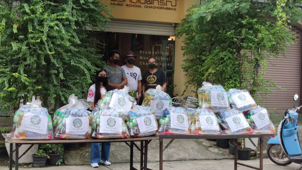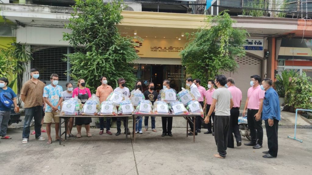 ได้ร่วมกันแจกถุงยังชีพให้กับพ่อแม่พี่น้องประชาชนชาวฉะเชิงเทราในเขตเทศบาลเมืองฉะเชิงเทราจำนวน 42 ครอบครัว