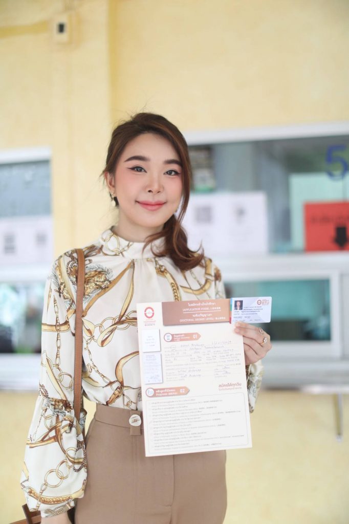 “ก่อนอื่น แย้ ต้องกราบขอบพระคุณ รศ.ดร.บังอร เบ็ญจาธิกุล ท่านอธิการบดี ที่ให้โอกาสแย้ได้มาเป็นนักศึกษาของที่นี่ และเป็นความตั้งใจของแย้อยู่แล้ว เรียกได้ว่า สมใจความตั้งใจเลยล่ะ ที่อยากจะเรียนให้สูงที่สุดเท่าที่จะทำได้ ที่แย้เลือกมาเรียนที่นี่ นอกจากจะได้ยินชื่อเสียงของมหาวิทยาลัยนี้มานานแล้ว บุคคลที่มีชื่อเสียงหลากหลายวงการก็จบจากที่นี่ นักกีฬาทีมชาติหลายคนก็เรียนที่นี่ น้องเทนนิส เจ้าของเหรียญทองโอลิมปิกปีล่าสุดก็เรียนที่นี่อีก แล้วพี่ๆ เพื่อนๆ ที่เคยเรียนจากสถาบันอื่นๆ ก็แนะนำให้มาเรียนที่นี่ค่ะ แย้ตัดสินใจไม่ยากเลยที่จะมาเรียนป.เอก ที่นี่ค่ะ