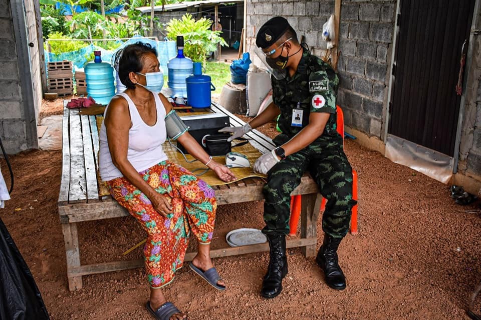 __วันที่ 11 ตุลาคม 2564 ที่ตำบลกุรุคุ อำเภอเมือง จังหวัดนครพนม ผู้สื่อข่าวรายงานว่า พันโท ศรณณัฐ นวลมณี ผู้บังคับกองพันทหารราบที่ 3 กรมทหารราบที่ 3 (ผบ.ร.3 พัน.3) นำความห่วงใยจากกองทัพบก ในห้วงสถานการณ์แพร่ระบาดโควิด-19 ที่ประชาชนได้รับความเดือดร้อนในหลายพื้นที่รับผิดชอบของจังหวัดนครพนม จัดชุดปฏิบัติการกิจการพลเรือน พร้อมด้วยเจ้าหน้าที่เสนารักษ์หมอเดินเท้า ลงพื้นที่แจ้งข่าวประชาสัมพันธ์ การตรวจรักษาพยาบาลขั้นต้น พร้อมทั้งได้มอบยาสามัญประจำบ้าน และมอบหน้ากากอนามัย ให้กับประชาชนผู้สูงอายุ และผู้ด้อยโอกาส ในพื้นที่ ตำบลกุรุคุ อำเภอเมือง จังหวัดนครพนม และช่องทางติดต่อประสานงานกับผู้นำชุมชนให้สามารถขอรับการสนับสนุนความช่วยเหลือในด้านต่างๆ เช่น รับ-ส่ง ผู้ป่วยติดเชื้อ หรือการอำนวยความสะดวกในการช่วยเหลือผู้ป่วยอื่นๆ และกลุ่มเปราะบางในทุกกรณี กับหน่วยงานในพื้นที่ ในการช่วยเหลืออย่างทันท่วงที โดยหน่วยได้ดำเนินการตามมาตรป้องกันการแพร่ระบาดเชื้อ COVID-19 อย่างเคร่งครัด