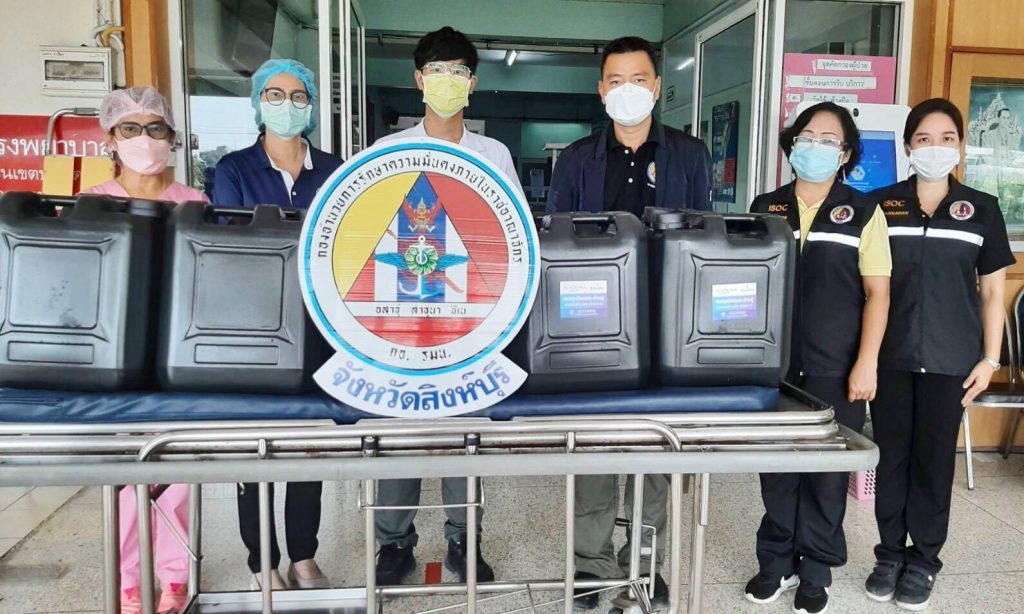 เมื่อ 12 ต.ค. 64 เวลา 1000 น. พ.อ. ชายธนัญชา วาจรัต รอง ผอ.รมน.จังหวัด ส.ห. พร้อมด้วยกำลังพลข้าราชการ กอ.รมน.จังหวัด ส.ห. ร่วมกับ บริษัท มิตรผล ไบโอ-เพาเวอร์ จำกัด มอบแอลกอฮอล์ล้างมือ จำนวน 1,200 ลิตร ให้กับ รพ.สนามแห่งที่ 3 (รพ.ท่าช้าง) และ รพ.สนามอำเภอพรหมบุรี จ.สิงห์บุรี เพื่อใช้ในการป้องกันและควบคุมการแพร่ระบาดของไวรัสโคโรนา 2019 (COVID-19) ให้แก่บุคลากร ประชาชนทั่วไปอย่างมีประสิทธิภาพและเกิดประโยชน์สูงสุด ภายใต้มาตรการกระทรวงสาธารณสุข