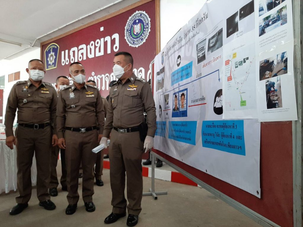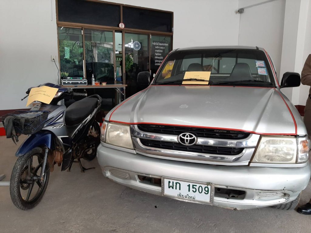 เจ้าพนักงานตำรวจจึงเข้าทำการตรวจสอบรถยนต์คันดังกล่าวโดยการเดินเท้าเข้าไป พบผู้ต้องหาที่ 1 และ 2 กำลัง ยกของกลางรายการที่ 1 วางไว้ที่บริเวณท้ายกระบะรถยนต์ จึงได้เข้าทำการตรวจสอบ ซึ่งกลุ่มผู้ต้องหาเห็นเจ้าพนักงานตำรวจกำลังเข้ามาจับกุม ผู้ต้องหาที่ 2 จึงได้ขับรถยนต์ ออกมาด้วยความเร็วเพื่อทำการหลบหนี โดยผู้ต้องหาที่ 2 ได้ขับรถออกจากสุสานโดยเลี้ยวขวาไปทางหมู่บ้านห้วยทรายขาวฯ ประมาณ 100 เมตร จึงได้ทำการทิ้งรถคันดังกล่าวเนื่องจากล้อหน้าแตกไม่สามารถขับต่อไปได้ และ ได้วิ่งหลบหนีเข้าไปในป่าละเมาะข้างทาง เจ้าพนักงานตำรวจจึงได้ทำการติดตามไปแต่ไม่พบตัวผู้ต้องหาที่ 2 ส่วนผู้ต้องหาที่ 1 ได้ทำการวิ่งหนี เจ้าพนักงานตำรวจได้ทำการติดตามจนสามารถควบคุมตัวได้ ต่อมาเจ้าหน้าที่ตำรวจได้เข้าทำการจับกุมผู้ต้องหาที่ 3 และ 4 ที่นั่งรออยู่บริเวณศาลาที่พักริมทางสามแยกปิงโค้ง ขาเข้าเมืองฯ รแล้วนำตัวผู้ต้องหาทั้งสามคน พร้อมของกลางส่งพนักงานสอบสวน สภ.นาหวาย จ.เชียงใหม่ เพื่อดำเนินการตามกฎหมายต่อไป ส่วนผู้ต้องหาที่ 2 ซึ่งหลบหนีไป ผบช.ภ.5 ได้กำชับและสั่งการให้ทำการออกหมายจับผู้ต้องหาดังกล่าวแล้ว และให้เร่งติดตามจับกุมตัวมาดำเนินคดีกฎหมายต่อไป