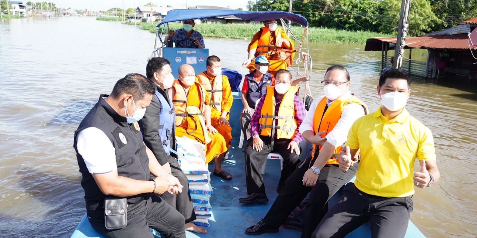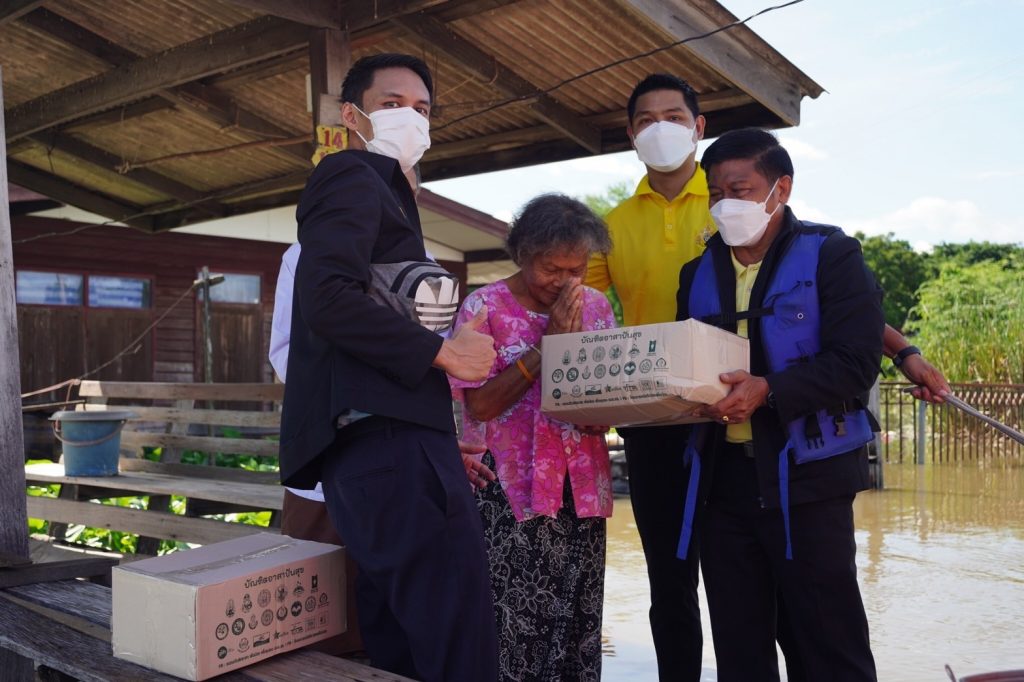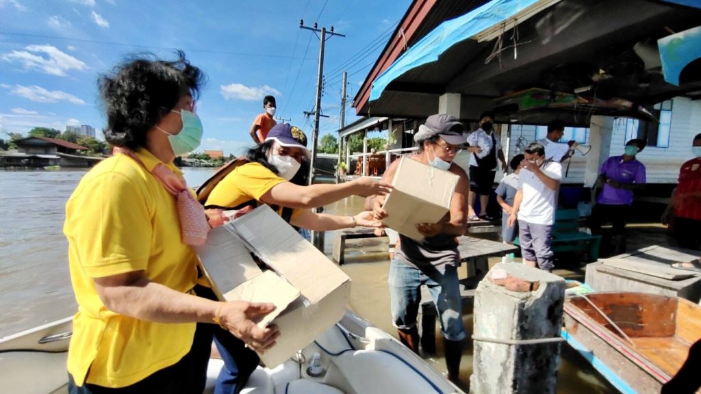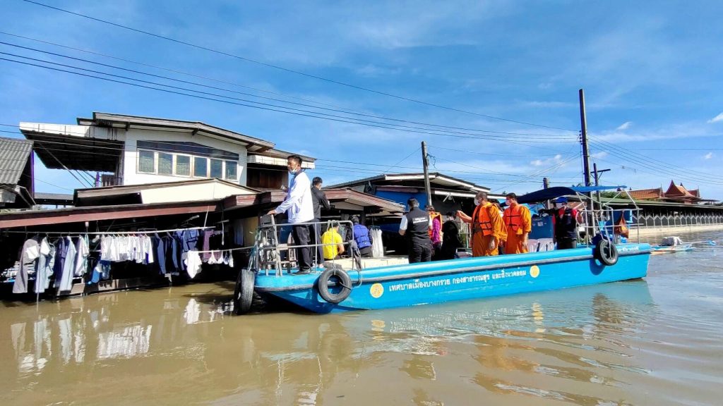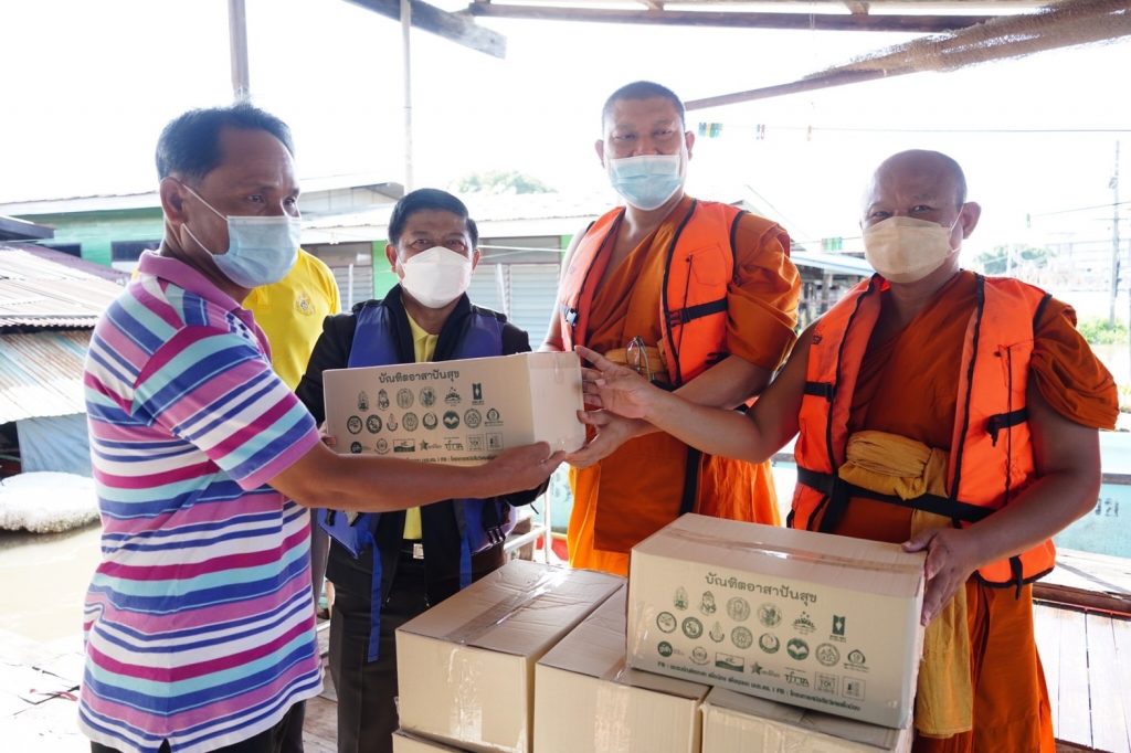 นำถุงยังชีพที่จัดแพคบรรจุในกล่อง ประกอบด้วย ข้าวสาร ปลากระป๋อง บะหมี่กึ่งสำเร็จรูป ซึ่งเป็นสิ่งของที่จำเป็นใช้ในการดำรงชีพ ขึ้นเรือล่องไปตามคลองบางกอกน้อย ส่งมอบสิ่งของและตรวจเยี่ยมให้กำลังใจ แก่ผู้ประสบภัยน้ำท่วมจากน้ำทะเลหนุนสูง และผู้ประสบภัยโควิด-19