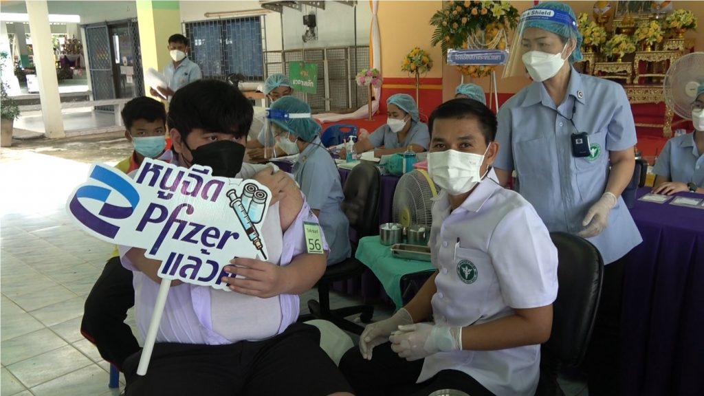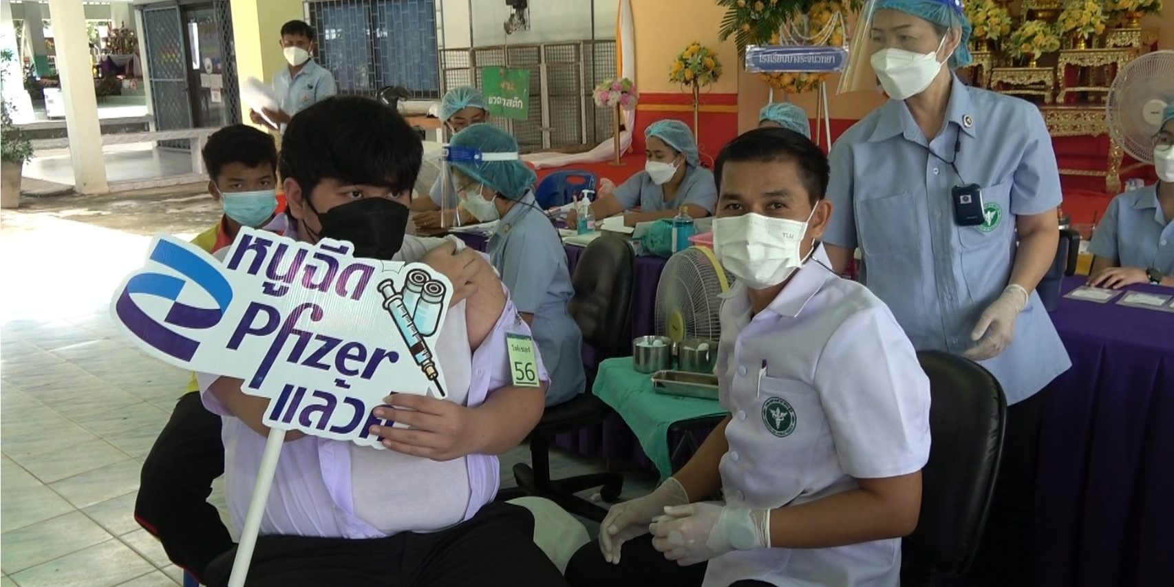 นายแพทย์ธีรศักดิ์ เด่นดวง รองนายแพทย์สาธารณสุขจังหวัดสิงห์บุรี พร้อมบุคลากรทางแพทย์ ฉีดวัคซีนโควิด 19 พร้อมทั้งสร้างความมั่นใจกับผู้ปกครองในการฉีดวัคซีนโควิด 19 Pfizer ให้กับนักเรียน นักศึกษาที่มีอายุ 12 ปีขึ้นไป ณ โรงเรียนบางระจัน อำเภอบางระจัน จังหวัดสิงห์บุรี ซึ่งจังหวัดสิงห์บุรี มีโรงเรียนและสถานศึกษาแจ้งความประสงค์ในการฉีดวัคซีนของนักเรียน จำนวน 130 แห่ง มีนักเรียน นักศึกษาที่มีอายุ 12 ปีขึ้นไปจำนวน 17,868 คนสมัครใจฉีดวัคซีนจำนวน 12,118 คน คิดเป็นร้อยละ 67.82 ในวันนี้ได้เปิดให้บริการฉีดวัคซีน Pfizer เข็มที่ 1 สำหรับนักเรียนนักศึกษาอายุ 12 ปีขึ้นไป ให้กับนักเรียนโรงเรียนบางระจันวิทยา จำนวนทั้งสิ้น 728 คน สำหรับสถาบันการศึกษาอื่นๆ อีก 476 แห่งในจังหวัดสิงห์บุรี จะได้รับการฉีดวัคซีนแล้วเสร็จภายในเดือนตุลาคม 2564 ซึ่งภายหลังจากฉีดวัคซีนนักเรียนได้ครอบคลุมแล้วก็จะสามารถเปิดภาคเรียนได้อย่างไรก็ตามวัคซีนเป็นเพียงการป้องกันการติดเชื้อที่ทำให้เกิดอาการรุนแรงน้อยลง ทำให้เด็กนักเรียนมีอาการไม่หนักมีความปลอดภัยเพิ่มมากขึ้น ไม่ได้ป้องกันการติดเชื้อ ดังนั้นทุกสถานศึกษาจึงยังจำเป็นต้องดำเนินการตามมาตรการความปลอดภัยของกระทรวงสาธารณสุขจังหวัดสิงห์บุรีอย่างเคร่งครัด