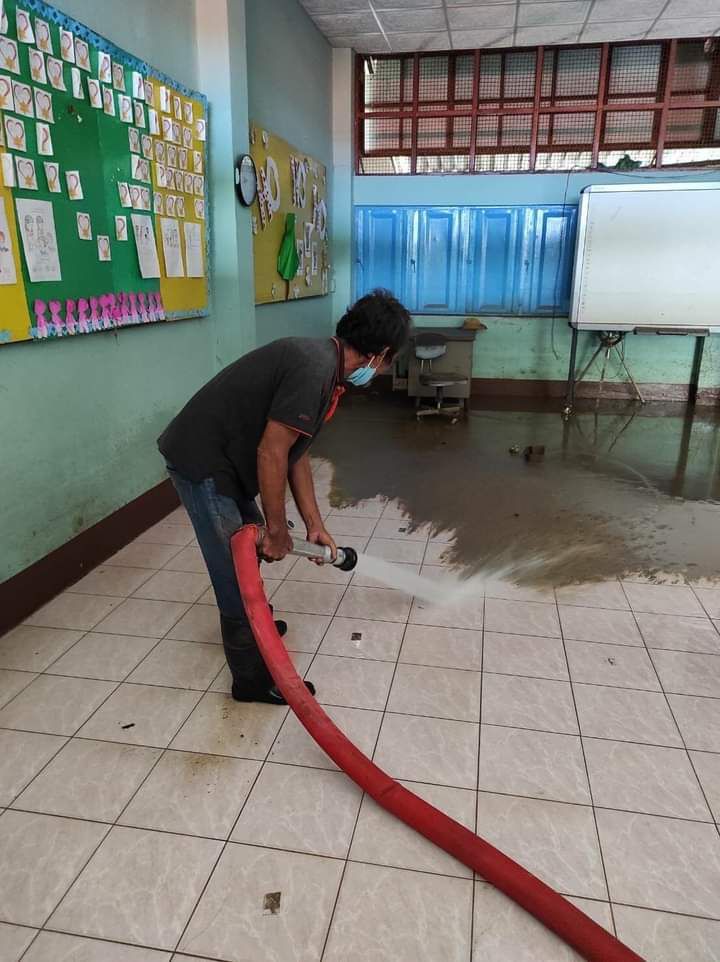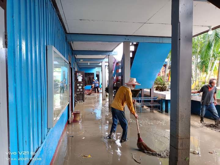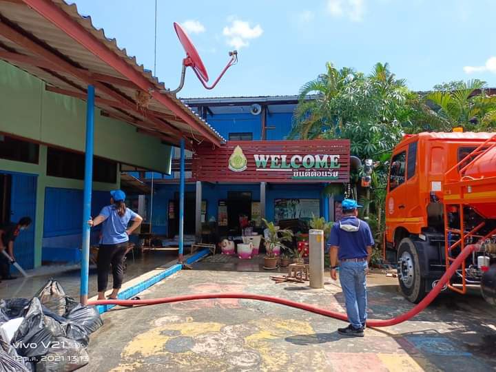เมื่อวานนี้ วันอังคารที่ 12 ตุลาคม 2564 นายประเวศน์ ศิริศิลป์ ผู้อำนวยการโครงการชลประทานสระบุรี สำนักงานชลประทานที่ 10 มอบหมายเจ้าหน้าที่พร้อมรถบรรทุกน้ำ ขนาด 6,000 ลิตร เพื่อให้ความช่วยเหลือในการล้างทำความสะอาดอาคารโรงเรียน วัดม่วงน้อย ตำบลบ้านครัว อำเภอบ้านหมอ จังหวัดสระบุรี หลังจากที่ได้รับผลกระทบจากอุทกภัยพายุเตี้ยนหมู่