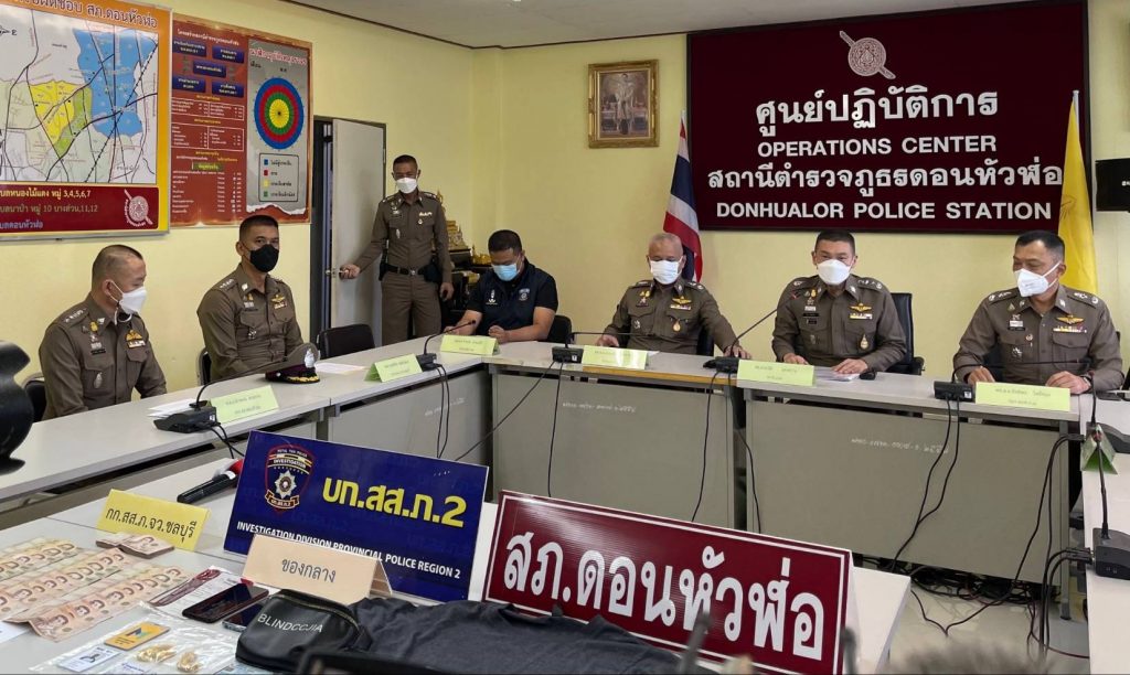 วันที่ 13 ตุลาคม 2564 เวลา 10.45 น.พล.ต.ท.ธิติ แสงสว่าง ผบช.ภ.2 พร้อมด้วย พล.ต.ต.อิทธิพร โพธิ์ทอง รอง ผบช.ภ.2,พล.ต.ต.ชัยต์พจน สูวรรณรักษ์ รอง ผบช.ภ.2,พล.ต.ต.อรรถสิทธิ์ กิจจาหาญ ผบก.ภ.จ.ชลบุรี และ พล.ต.ต.ธีรเดช ธรรมสุธีร์ ผบก.สส.บช.ภ.2 ร่วมแถลงข่าวผลการจับกุมคนร้ายวิ่งราวทรัพย์ร้านทองออโรร่า ภายในห้างโรบินสันไลฟ์ไตล์ ต.ดอนหัวฬ่อ อ.เมือง จ.ชลบุรี