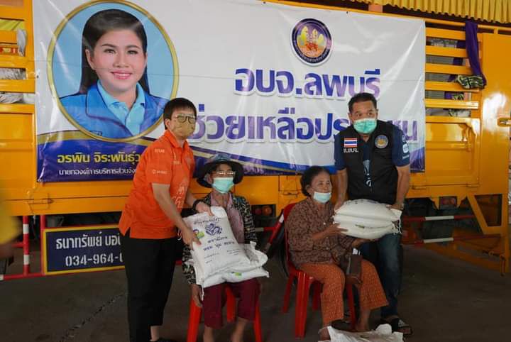 นายกองค์การบริหารส่วนจังหวัดลพบุรี ไม่ทอดทิ้งพี่น้องประชาชนชาวลพบุรี ลงพื้นที่มอบข้าวสารให้แก่ผู้ที่ได้รับผลกระทบจากภัยพิบัติน้ำท่วม ครัวเรือนละ 3 ถุงถุงละ 5 กิโลกรัม