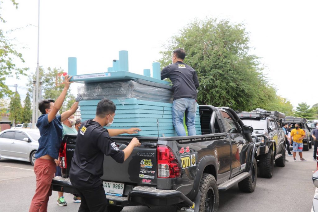นอกจากนี้ กลุ่มออฟโรดTJM SV Autotire ได้สาธิตวิธีการประกอบเตียงอีกด้วย โดยเตียงสนามแอร์โรคลาสผลิตจากพลาสติกคุณภาพสูงและวัสดุเดียวกันกับที่ใช้ผลิตเตียงผู้ป่วยในโรงพยาบาลชั้นนำทั่วไป น้ำหนักเบา แข็งแรง อายุการใช้งานยาวนาน สามารถรับน้ำหนักได้กว่า 200 กิโลกรัม ติดตั้งได้รวดเร็ว และที่สำคัญคือสามารถทำความสะอาดและฆ่าเชื้อได้ง่าย ไม่มีปัญหาเรื่องการสะสมของเชื้อโรค โดยส่งมอบให้กับศูนย์พักคอย (Community Isolation) และโรงพยาบาลสนามที่ต้องการใช้งานต่อไป หลังจากสถานการณ์โควิด-19 คลี่คลาย เตียงสนามเหล่านี้สามารถถูกดัดแปลงเป็นผลิตภัณฑ์อื่นๆ เช่น ปรับเปลี่ยนเป็นโต๊ะด้วยการเปลี่ยนขาเตียง และสามารถนำไปรีไซเคิล ทำให้ไม่เกิดปัญหากับสิ่งแวดล้อมในอนาคตด้วย