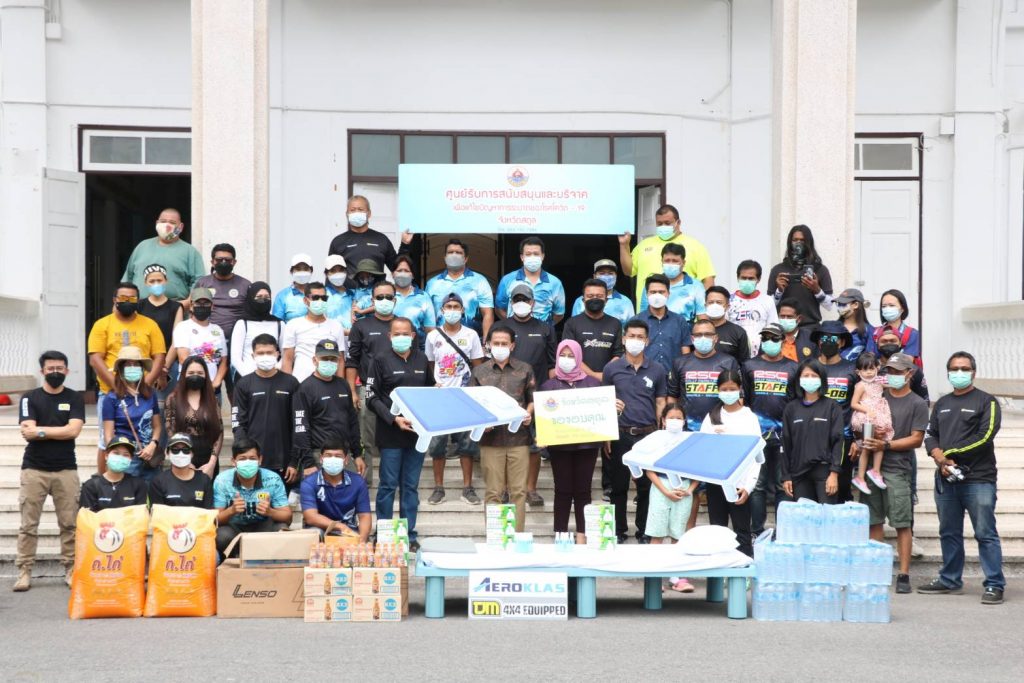 วันนี้ 18 ตุลาคม 2564 ที่บริเวณหน้าอาคารศาลากลางจังหวัดสตูล อำเภอเมืองสตูล จังหวัดสตูล นายเอกรัฐ หลีเส็น ผู้ว่าราชการจังหวัดสตูล พร้อมด้วยนาวาตรีหญิงโนสมา หลีเส็น นายกเหล่ากาชาดจังหวัดสตูล และนายจรัส บำรุงเสนา ประชาสัมพันธ์จังหวัดสตูล ร่วมรับมอบเตียงสนามแอร์โรคลาส พร้อมชุดเครื่องนอน จำนวน 70 ชุด มูลค่า 210,000 บาท ที่ได้รับการสนับสนุนจากบริษัท เอ็ชเอ็มซี โปลีเมอส์ จำกัด และบริษัท แอร์โรคลาส จำกัด พร้อมด้วยเครื่องอุปโภค-บริโภค ได้แก่ ข้าวสาร น้ำดื่ม เจลแอกอฮอล์และหน้ากากอนามัย จากนายธเนตร์ กรอบเพชร กรรมการผู้จัดการ TJM SU Autotire และกลุ่มออฟโรดTJM SV Autotire เพื่อส่งต่อให้โรงพยาบาลสนามในจังหวัดสตูล