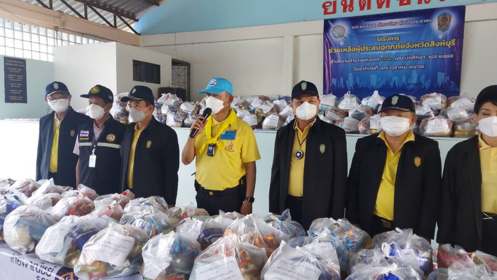 วันที่ 17 ต.ค. 64 เวลา 13.30 น. พล.ต.ท.สมพงษ์ ชิงดวง ผู้ช่วย ผบ.ตร. เป็นผู้แทนในส่วนของสำนักงานตำรวจแห่งชาติ ร่วมกับตัวแทนคณะนักศึกษา (วปอ.2555) ลงพื้นที่แจกถุงยังชีพจำนวน 1,000 ชุด ให้กับประชาชนที่ประสบอุทกภัยในพื้นที่ ต.ทับยา อ.อินทร์บุรี จ.สิงห์บุรี โดยมีนายนิพนธ์ สีตะระโส นายกเทศมนตรีตำบลทับยา และคณะให้การต้อนรับและรายงานสถานการณ์น้ำให้รับทราบ พร้อมทั้ง พล.ต.ต.วีรวิชญ์ บัวประเสริฐยิ่ง ผบก.ภ.จว.สิงห์บุรี, พ.ต.อ.ไกลเขต บุรีรักษ์ รอง ผบก.ฯ, พ.ต.อ.สุรพจน์ รอดบำรุง รอง ผบก.ฯ, พ.ต.อ.ธีรวัจน์ ขจรเกียรติภาส ผกก.สภ.อินทร์บุรี, พ.ต.อ.สายชล โพธิ์ขอม ผกก.สภ.พรหมบุรี, พ.ต.ท.หญิงดวงตา ใหญ่กว่าวงษ์ รอง ผกก.ฝอ.ฯ จิตอาสา904, ตร.ในสังกัดฯ และ กต.ตร.ภ.จว.สิงห์บุรี