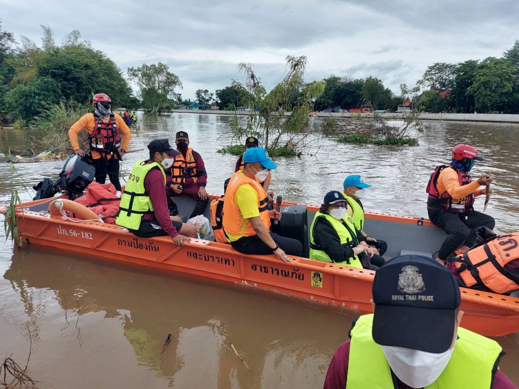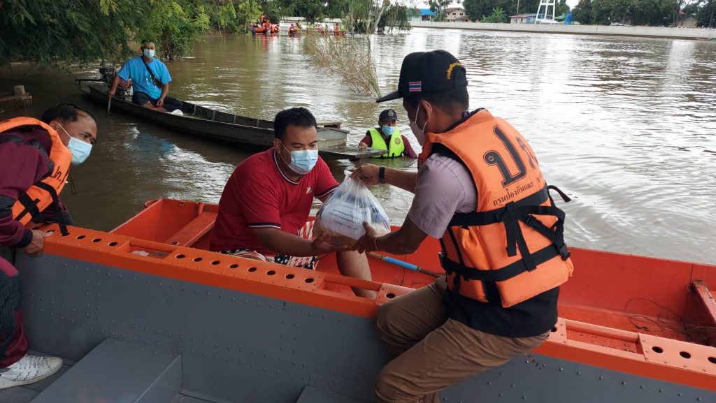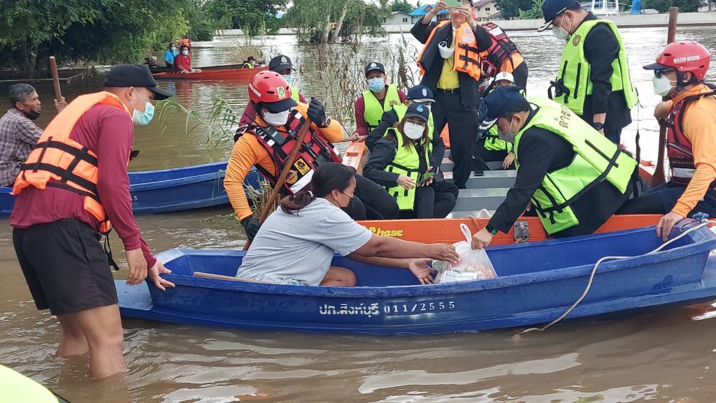 จากนั้นมีผู้แทนชุมชนเป็นผู้รับมอบนำสิ่งของไปแจกจ่ายให้กับชาวบ้านที่ประสบภัย ในเขตเทศบาลตำบลทับยา และบ้านเกาะบางพระนอน ม.1 ต.ทับยา อ.อินทร์บุรี จ.สิงห์บุรี ซึ่งมีน้ำท่วมสูง ชาวบ้านต้องใช้เรือในการสัญจรเข้าออกหมู่บ้านเพียงทางเดียวเท่านั้น